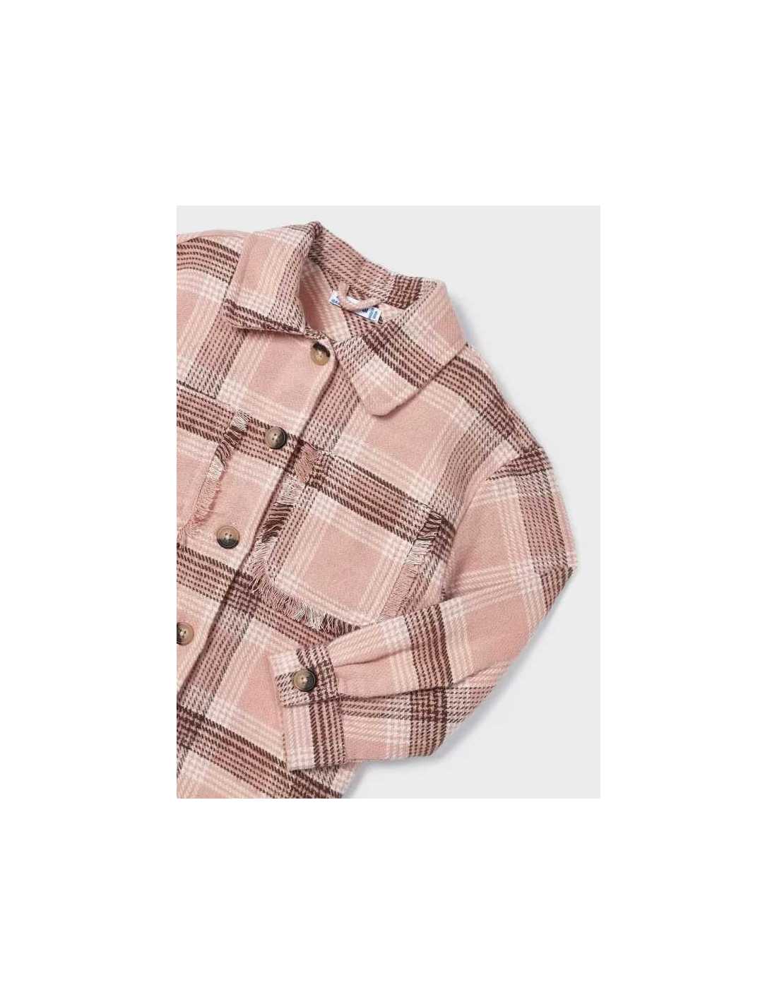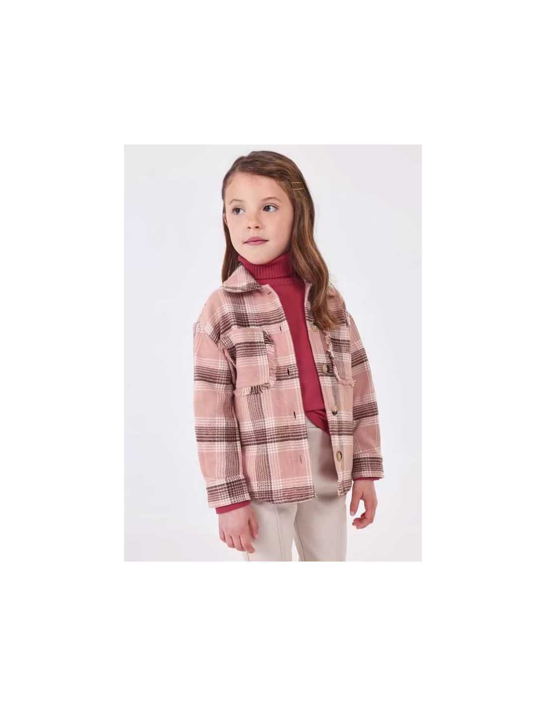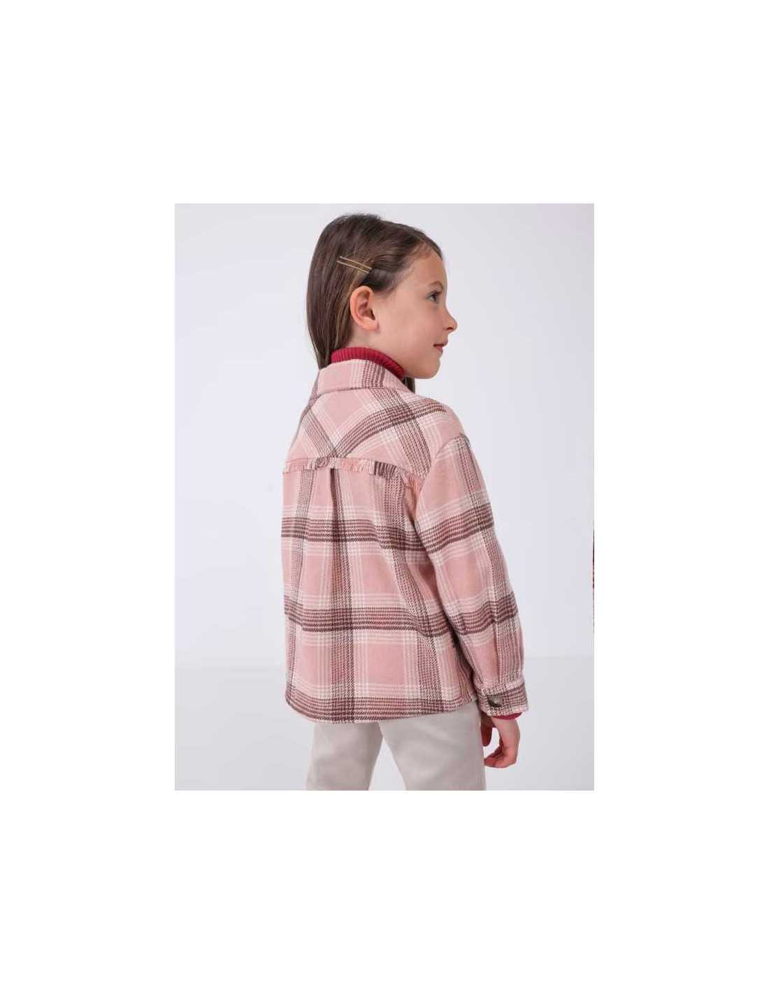 Sobrecamisa de manga larga para niña. Cuello camisero. Motivo de cuadros.