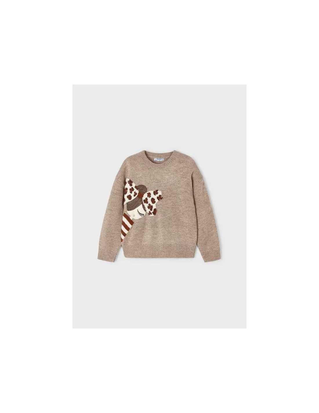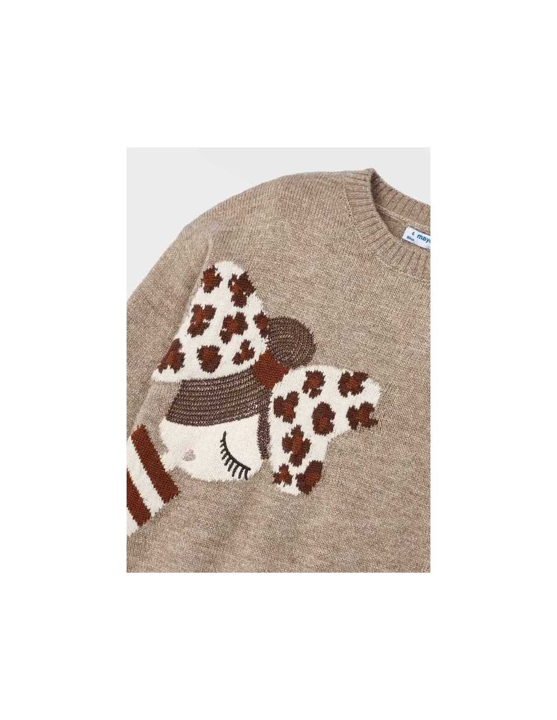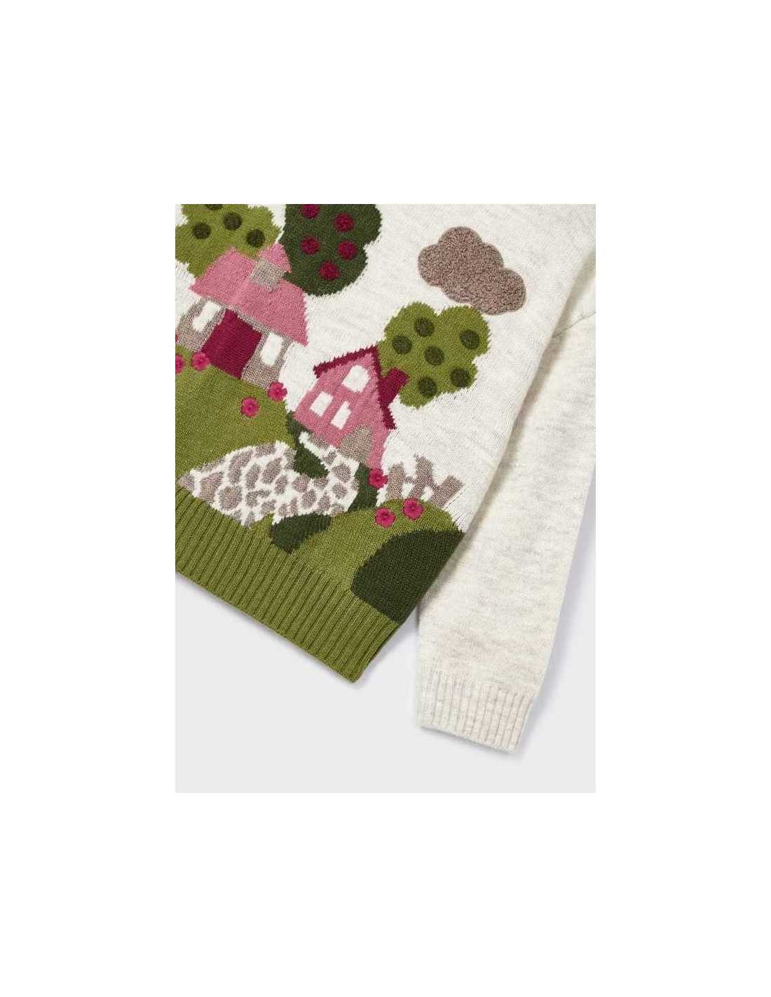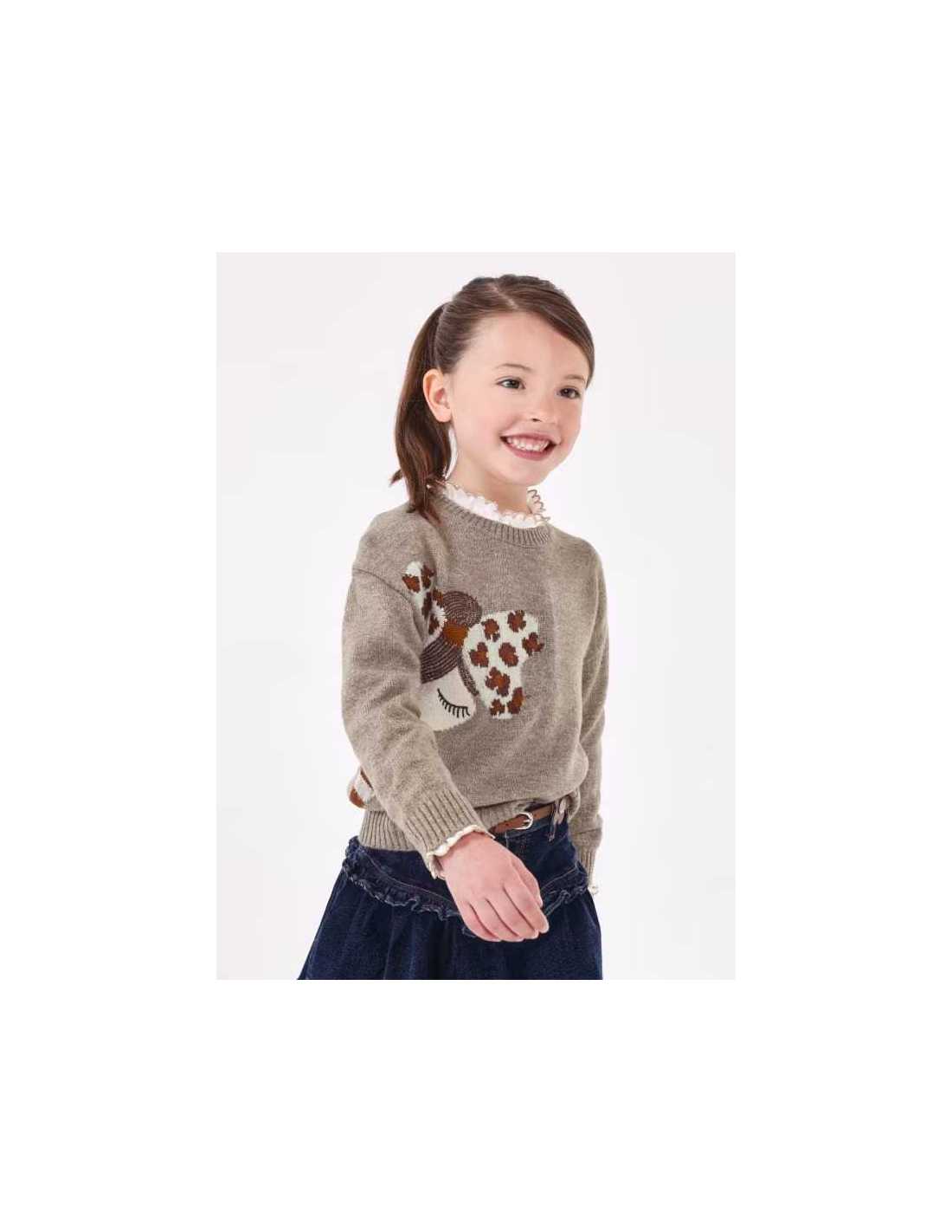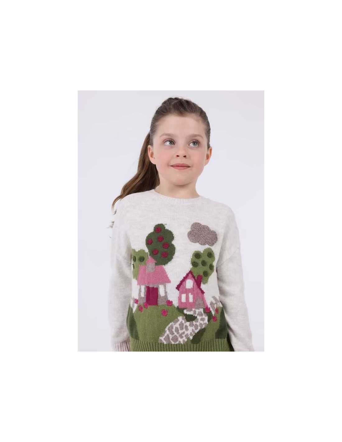 Jersey de manga larga para niña. Tejido de punto con lana. Dibujo tejido con técnica intarsia.
