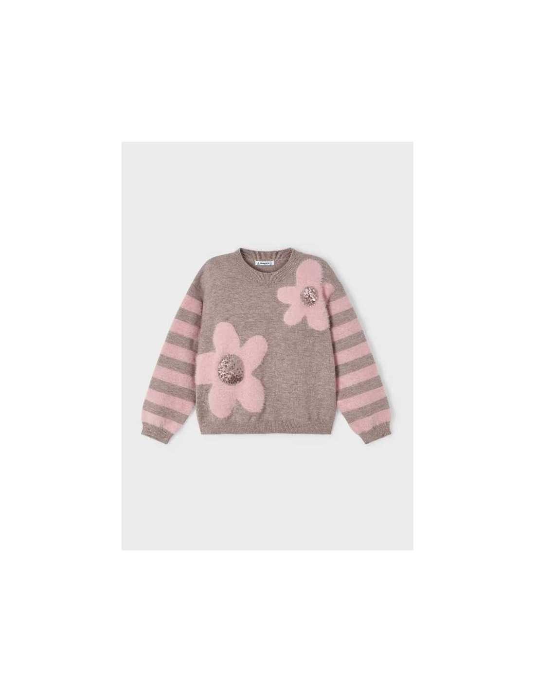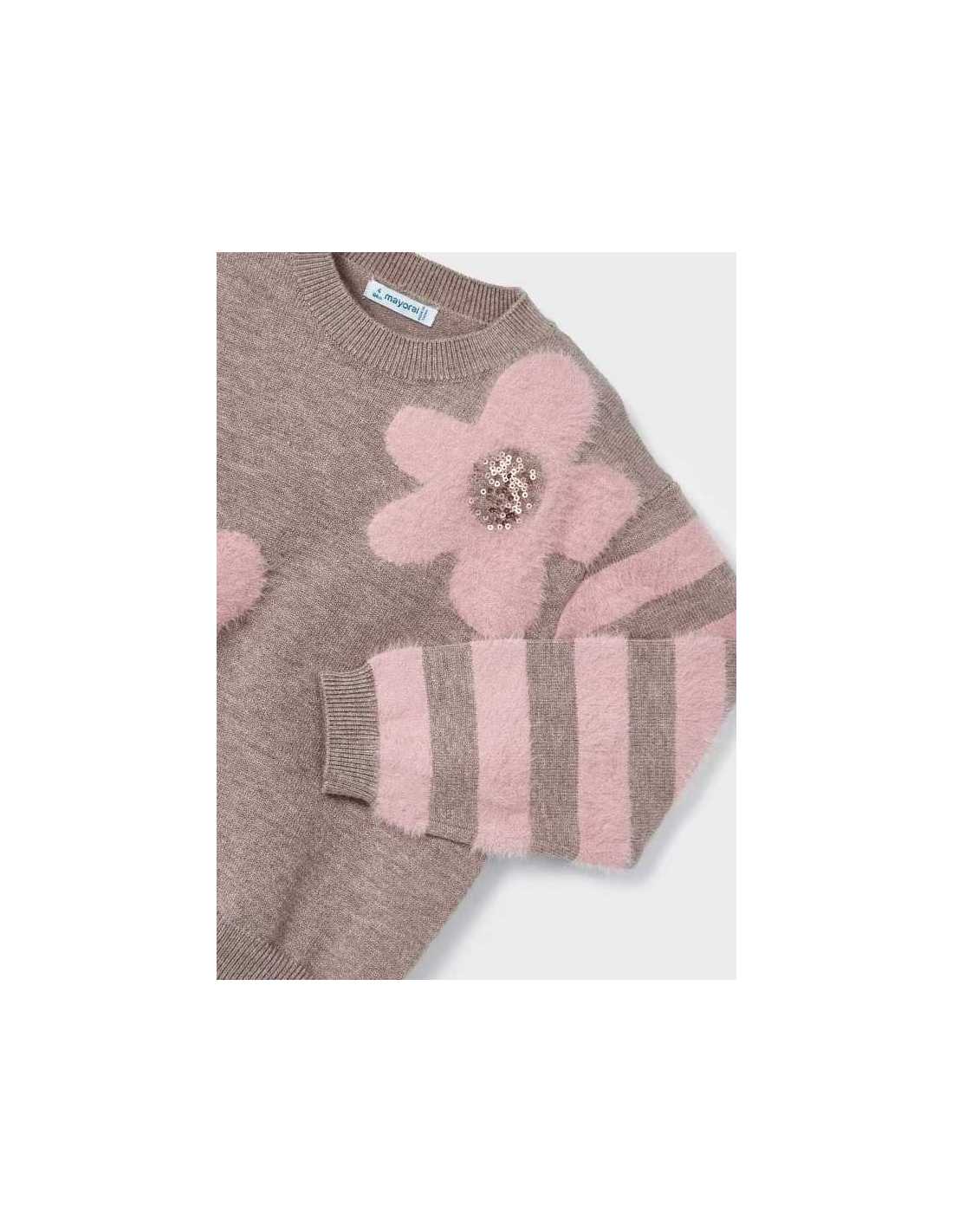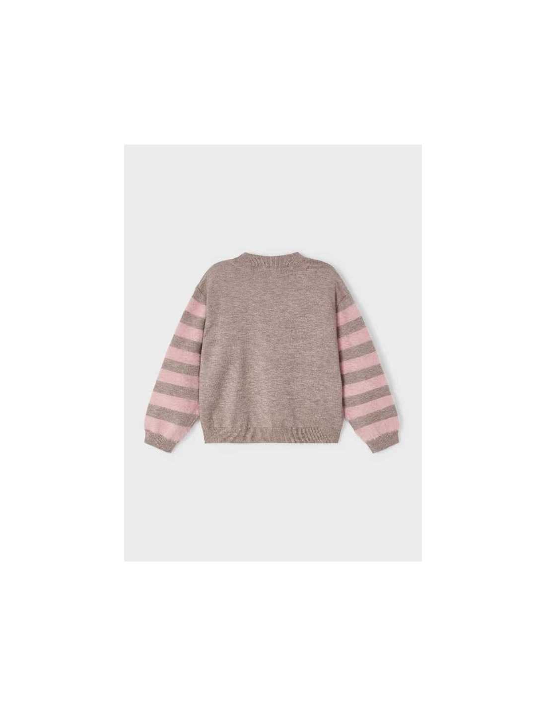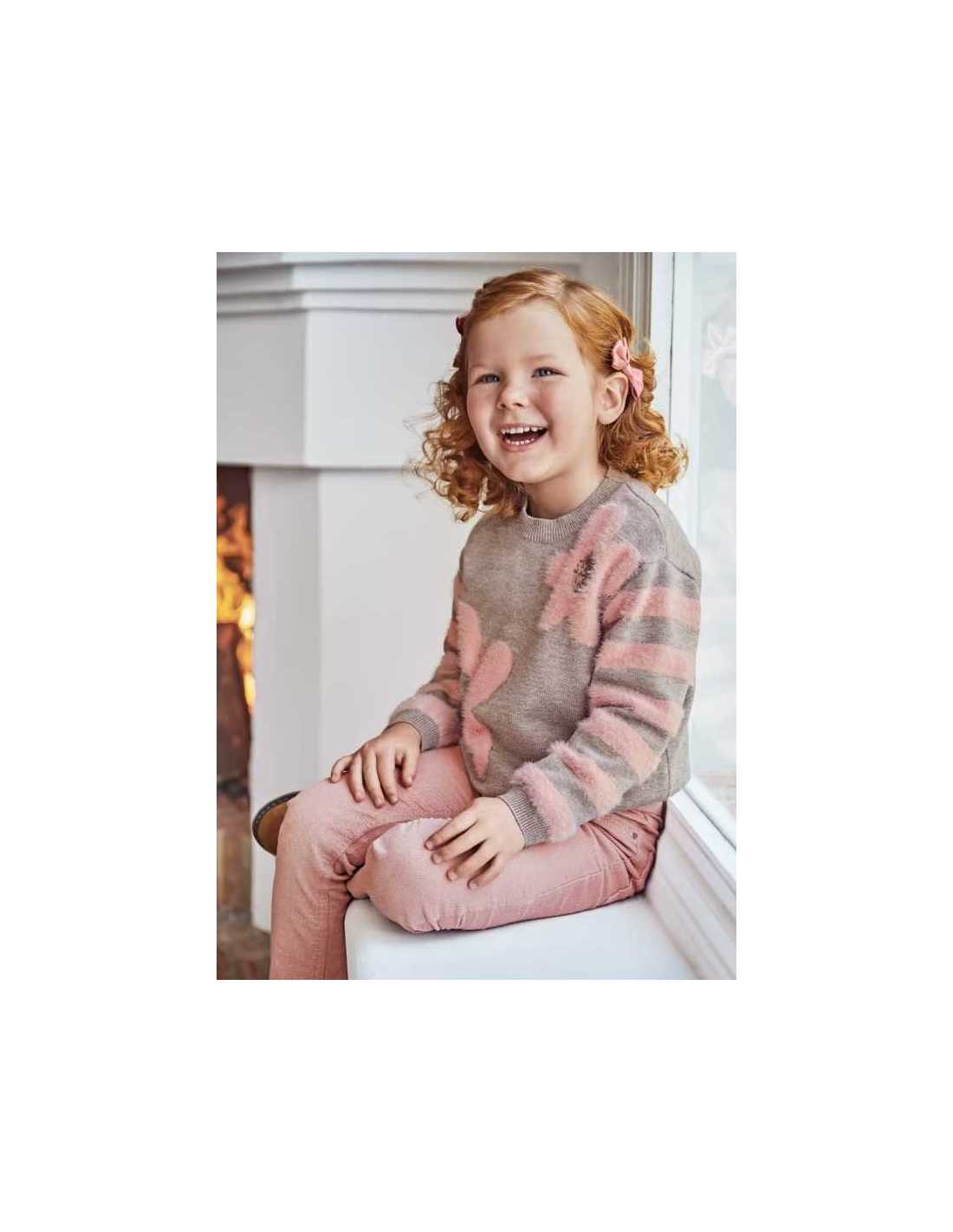 Jersey de manga larga para niña. Tejido de punto con lana. Dibujo tejido con técnica intarsia.