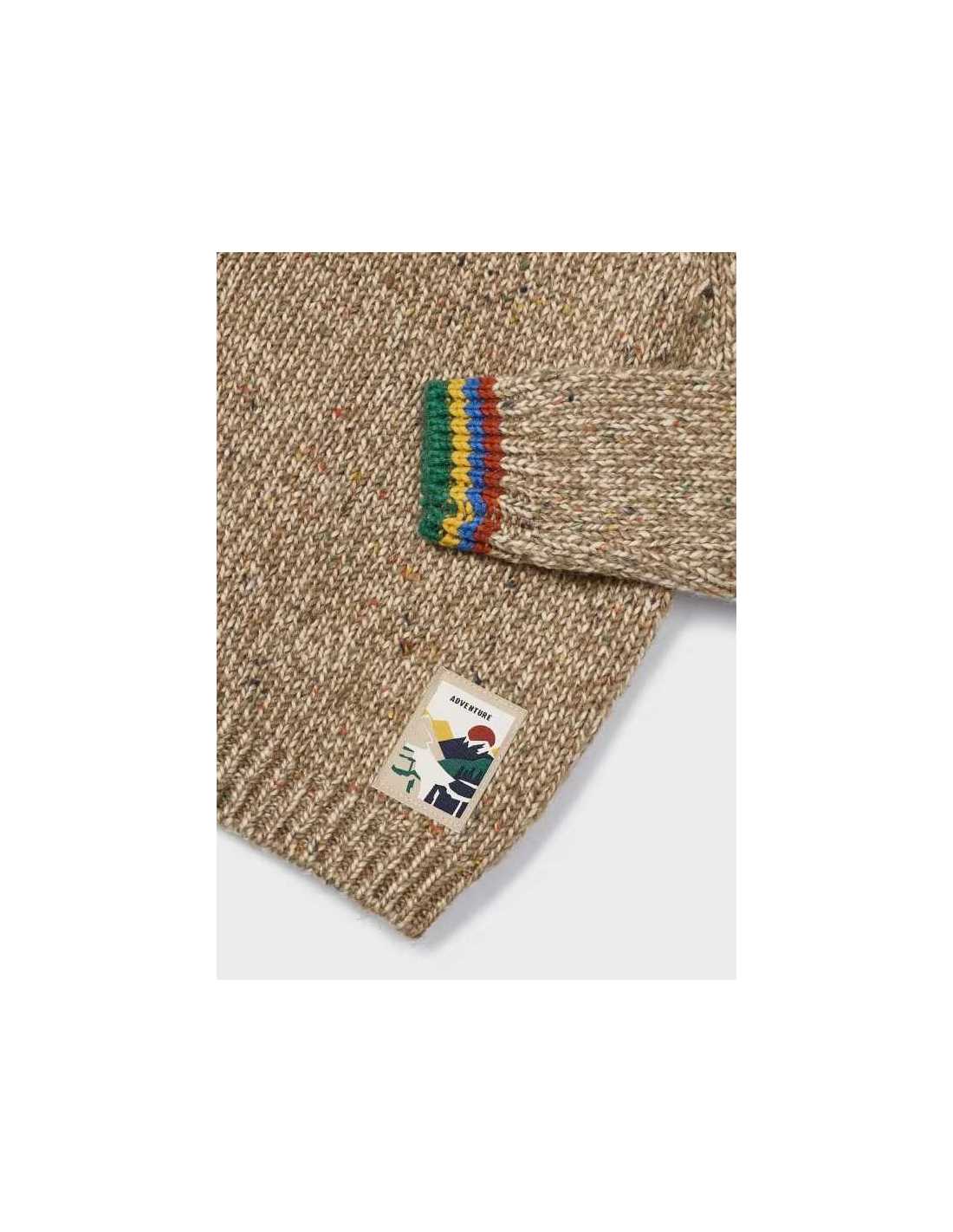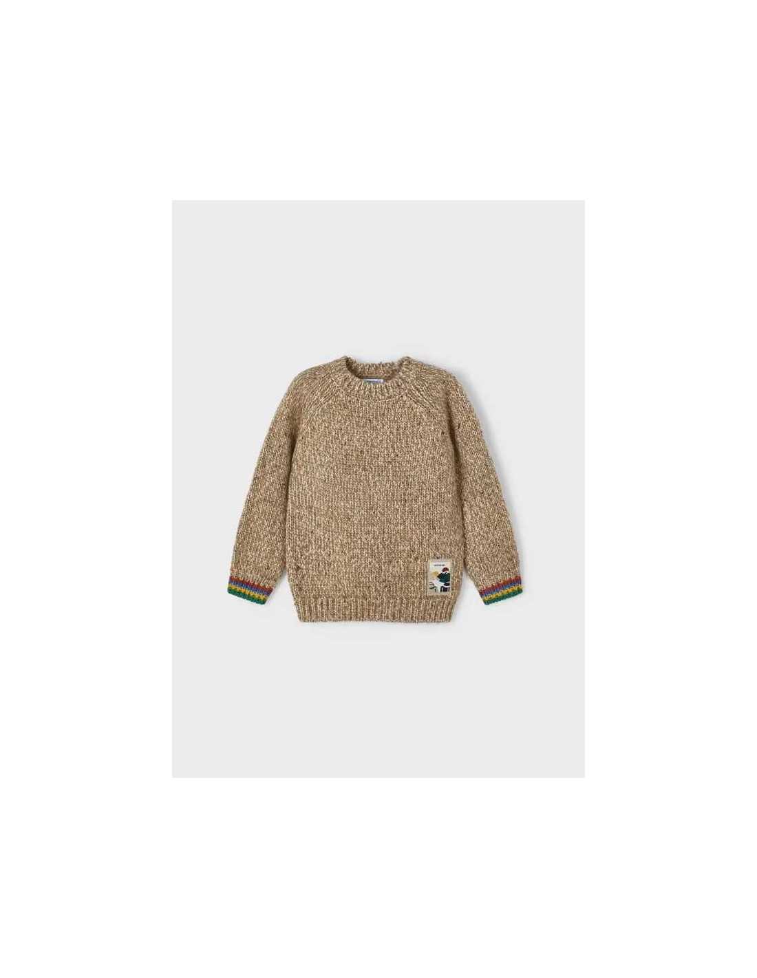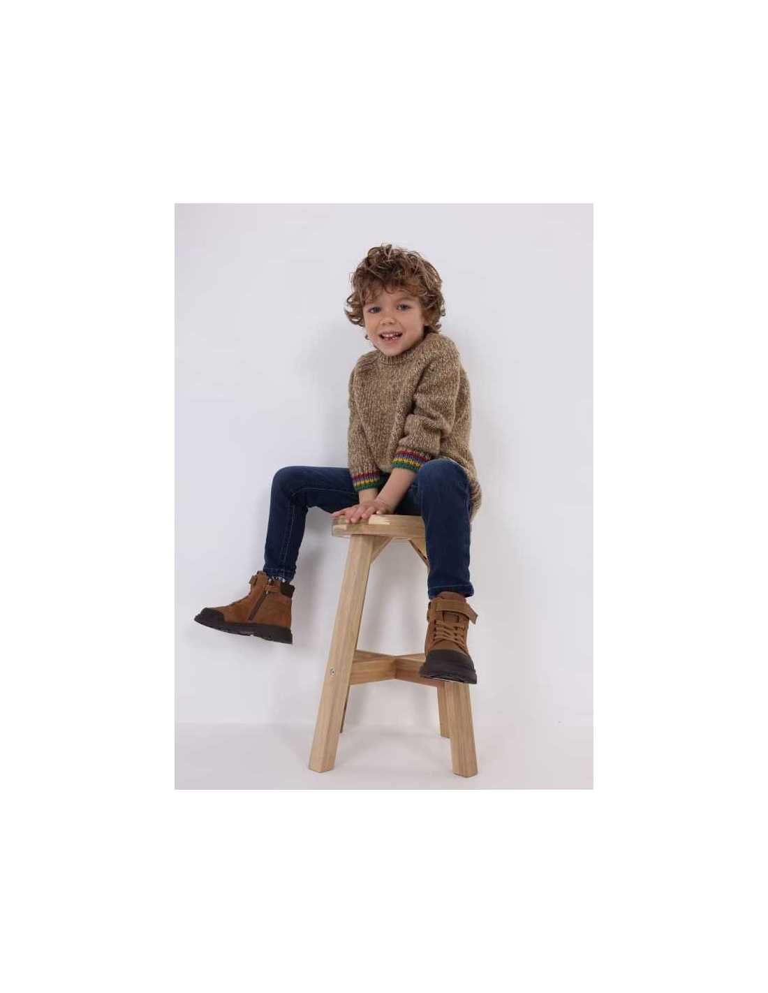 Jersey de manga larga para niño con puños elásticos a contraste. Original tejido jaspeado (punto neps).