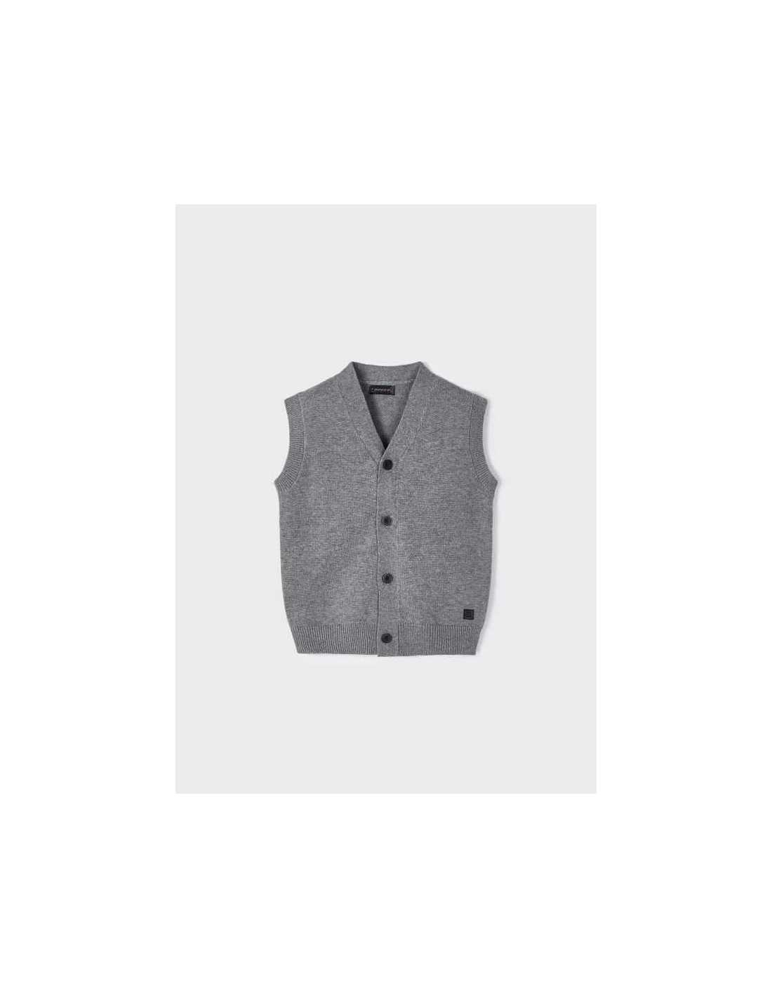 Chaleco sin mangas para niño. Cierre con botones en la parte delantera. Tejido de punto con lana. Bajo elástico para un mejor ajuste.