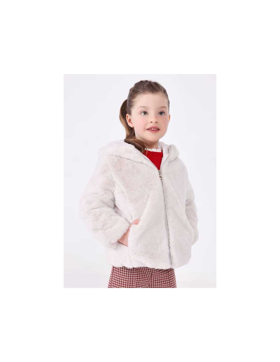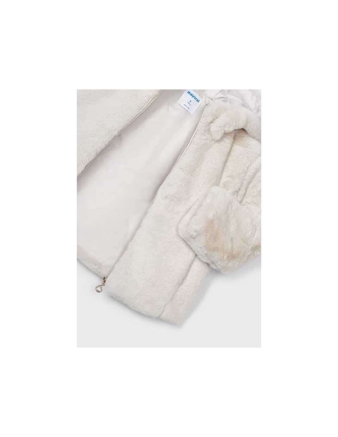 Abrigo de manga larga para niña. Modelo con capucha. Cierre central delantero con cremallera. Divertido exterior de rizo perfecto para sus looks más abrigados. Bolsillos en los laterales.