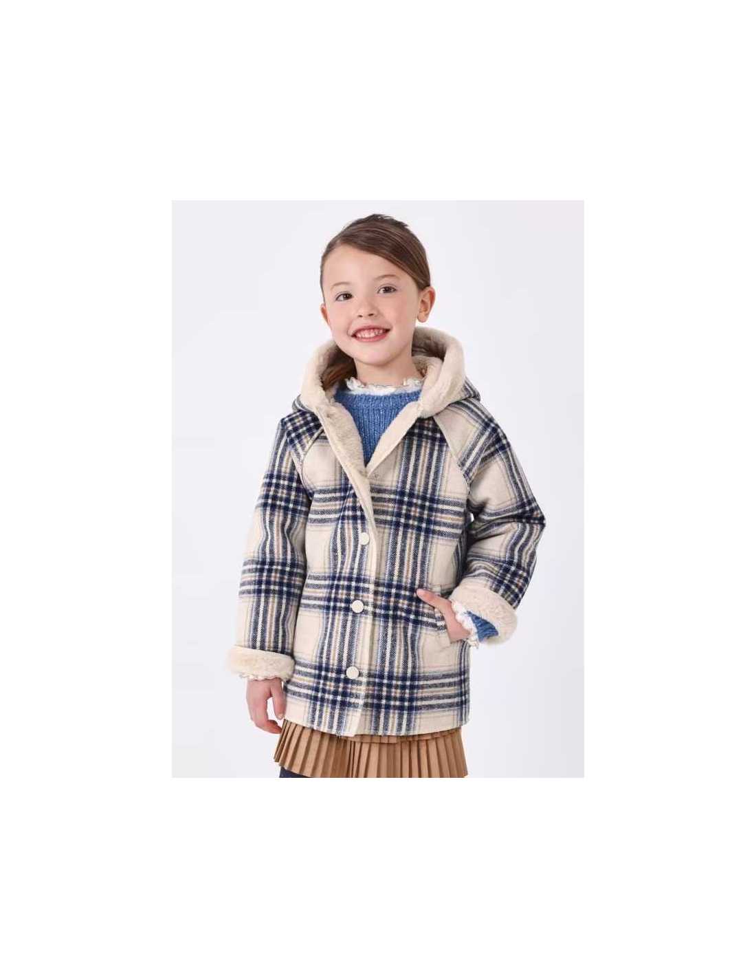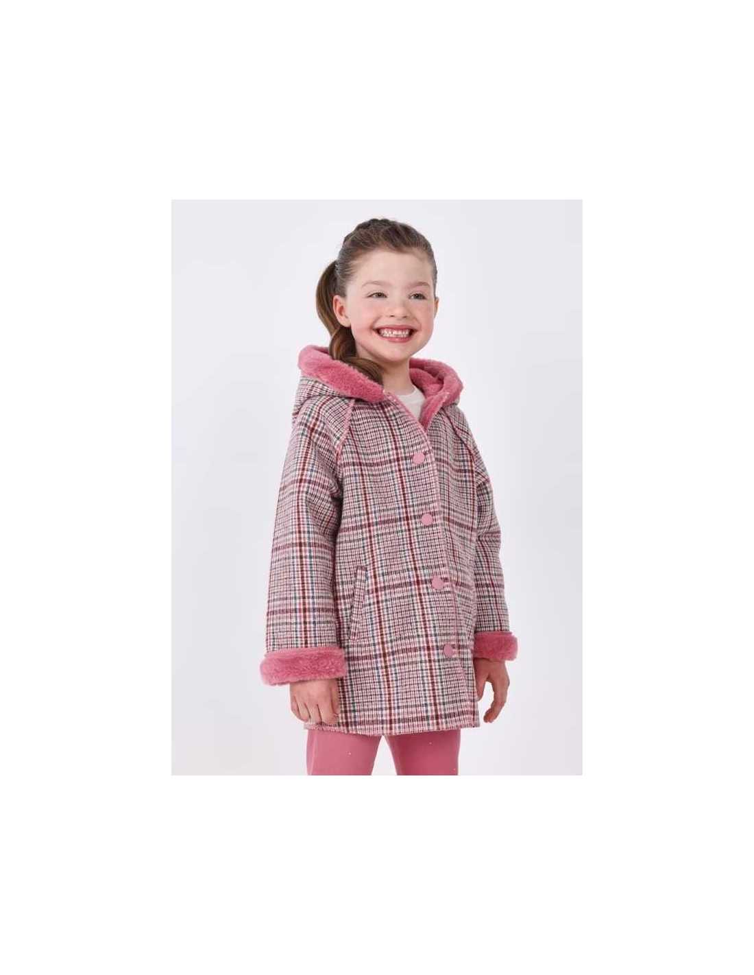 Abrigo de manga larga para niña. Modelo con capucha. Forro interior de pelo. Cierre con botones. Bolsillos en los laterales. Por motivos de seguridad, las tallas pequeñas (2-3 años) pueden sufrir algunas variaciones en los elementos decorativos que se usen en el diseño.