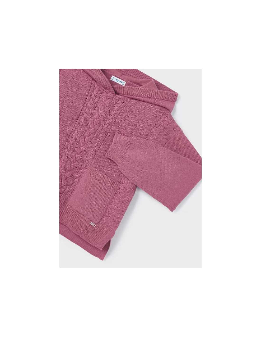 Jersey de manga larga para niña. Cuello con capucha. Tejido de punto tricotosa de tacto suave y agradable. Bolsillos funcionales en la parte delantera.