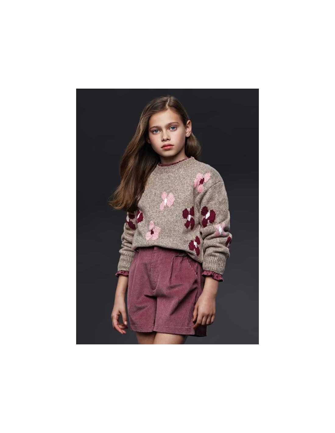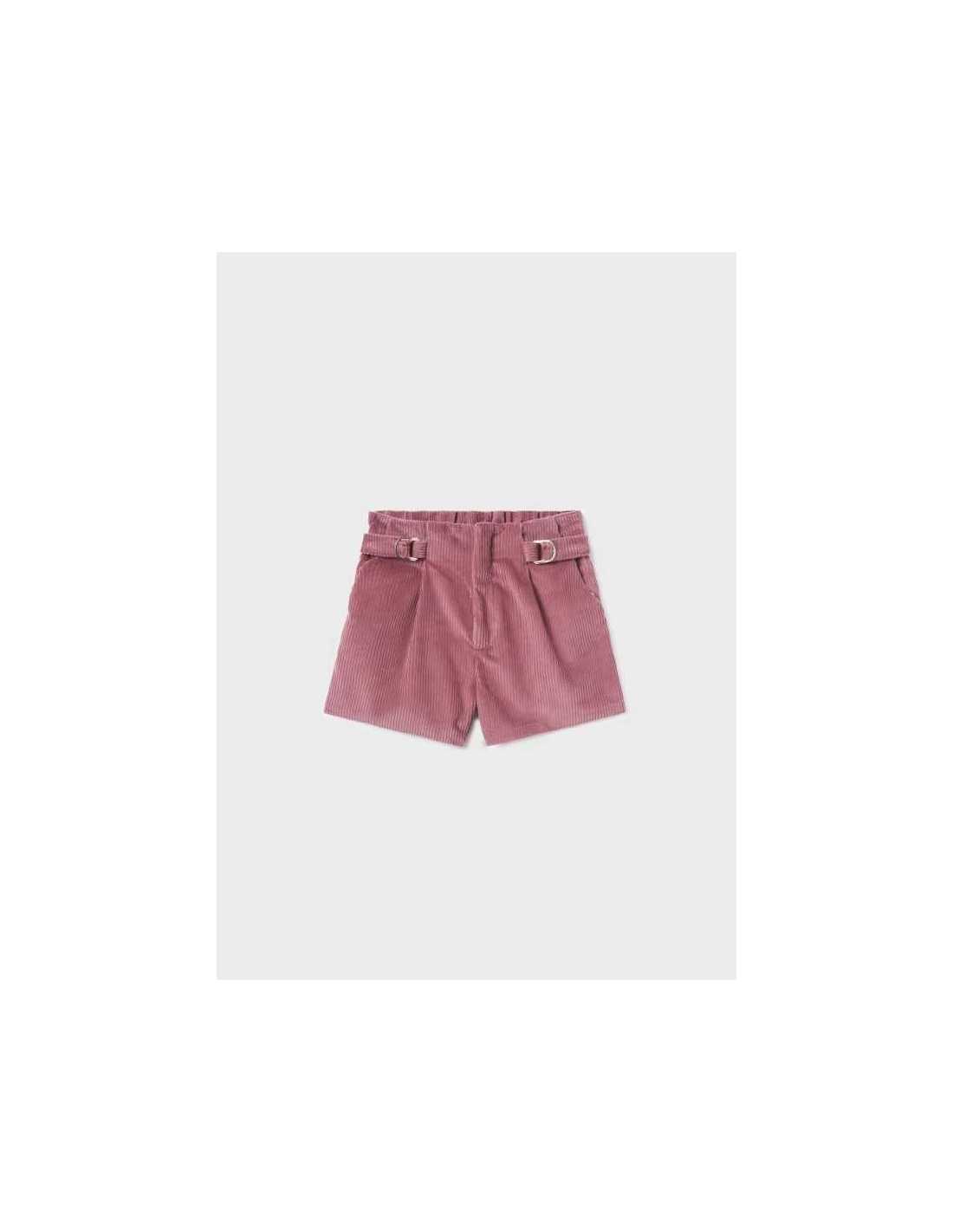 Pantalón de tipo short para chica. Cierre central delantero con cremallera. Cálido tejido de pana de gran comodidad y suavidad. Bolsillos en los laterales.