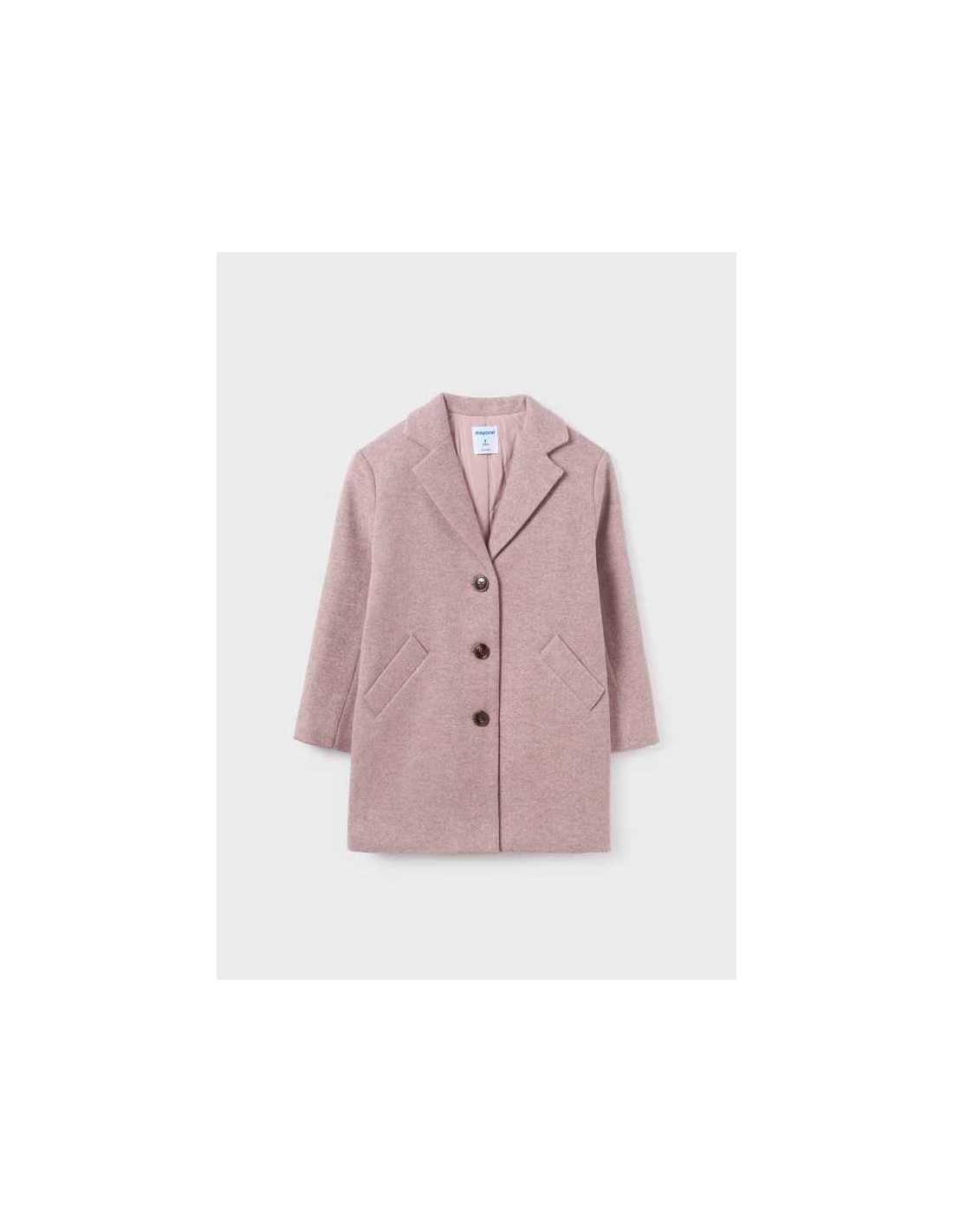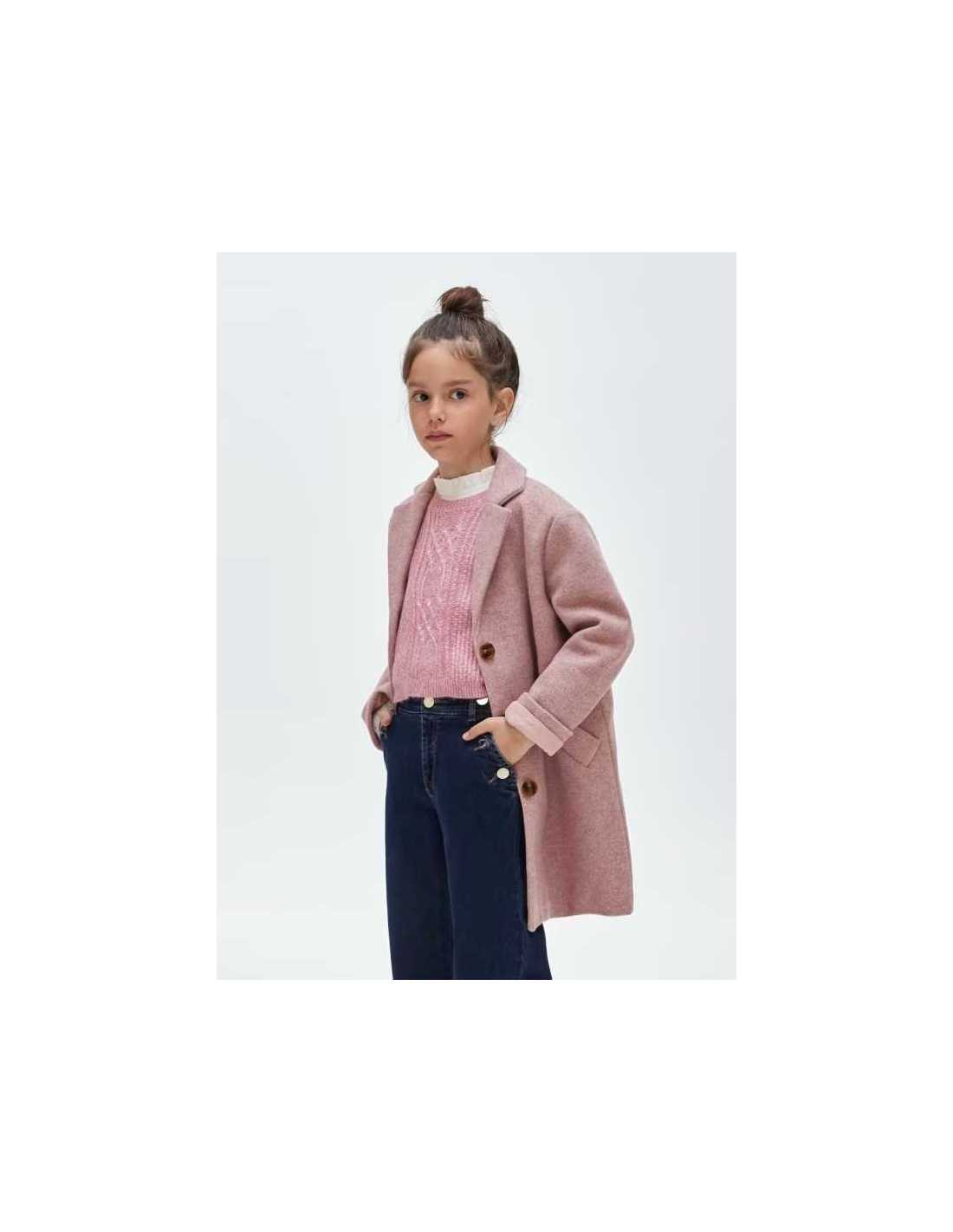 Abrigo de manga larga para chica. Cuello camisero. Cierre con botones en la parte delantera. Bolsillos en los laterales.