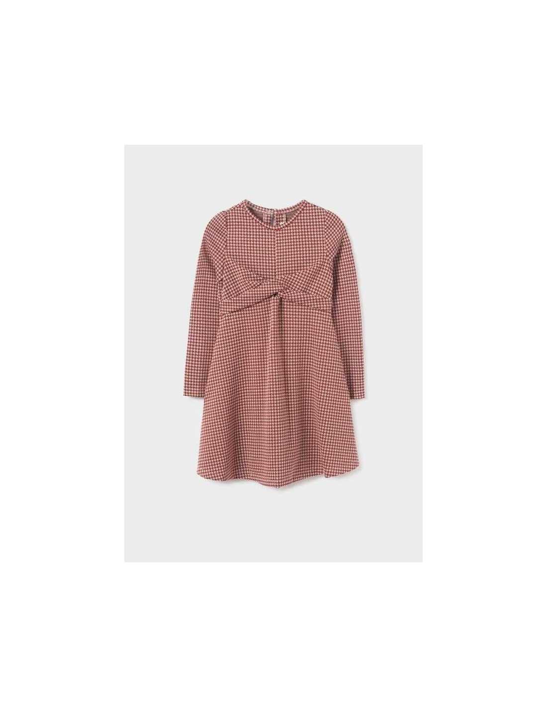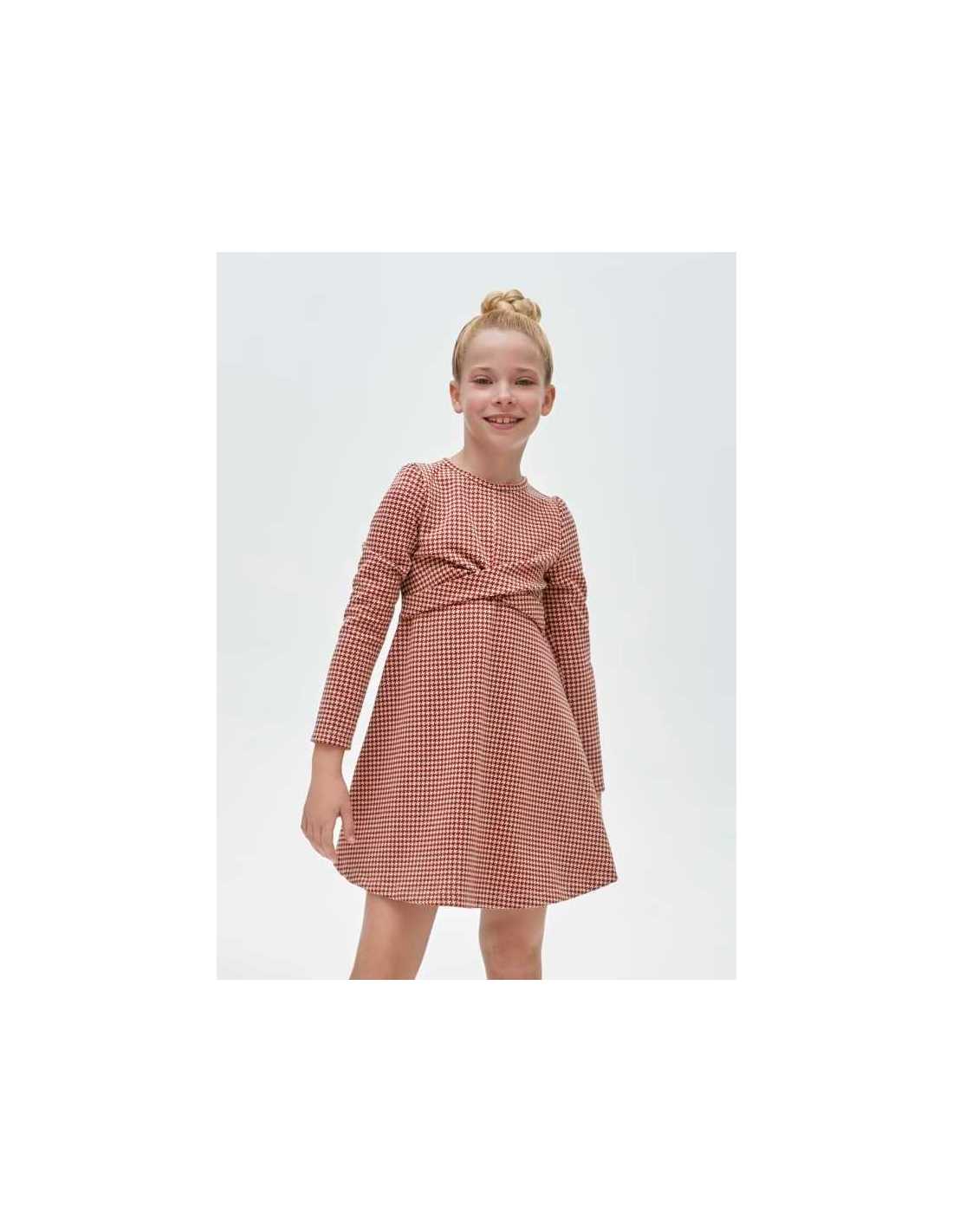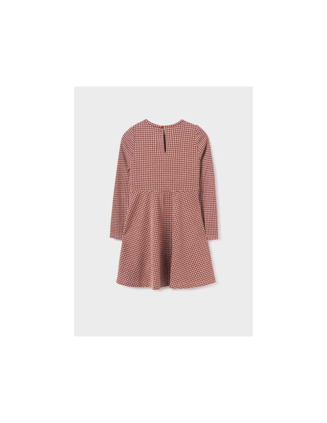 Vestido pata de gallo jacquard chica ,cuello redondo, manga larga 10 a 18 años .