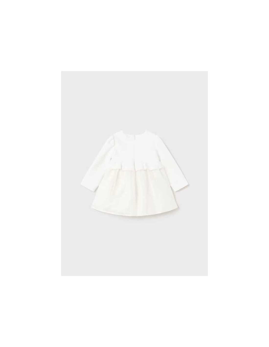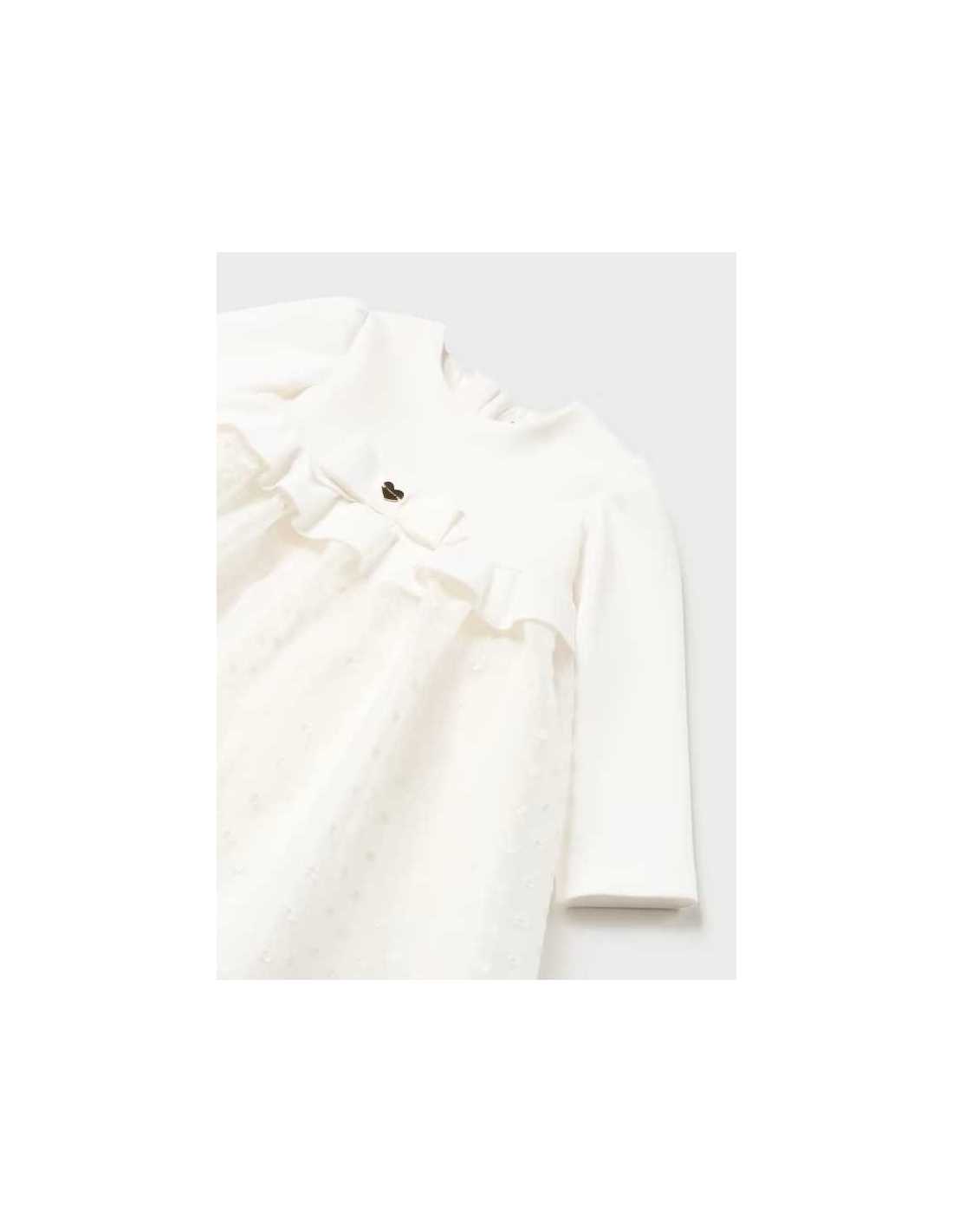 Vestido tul bordado bebe niña manga larga, cuello bebe 0 a 18 meses.