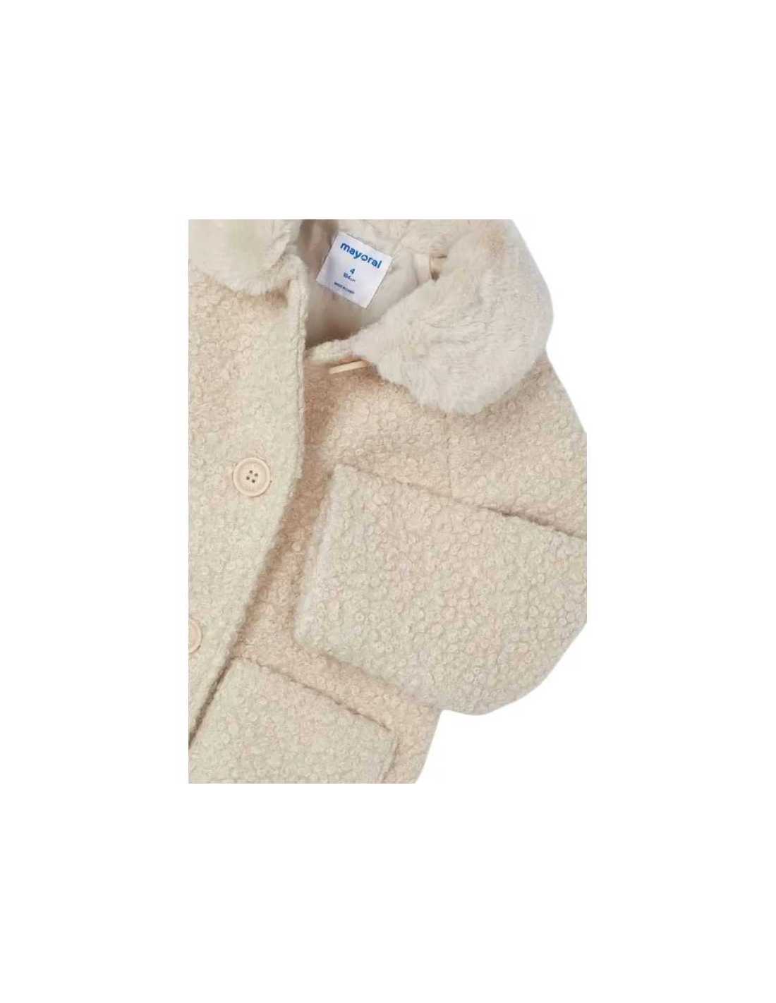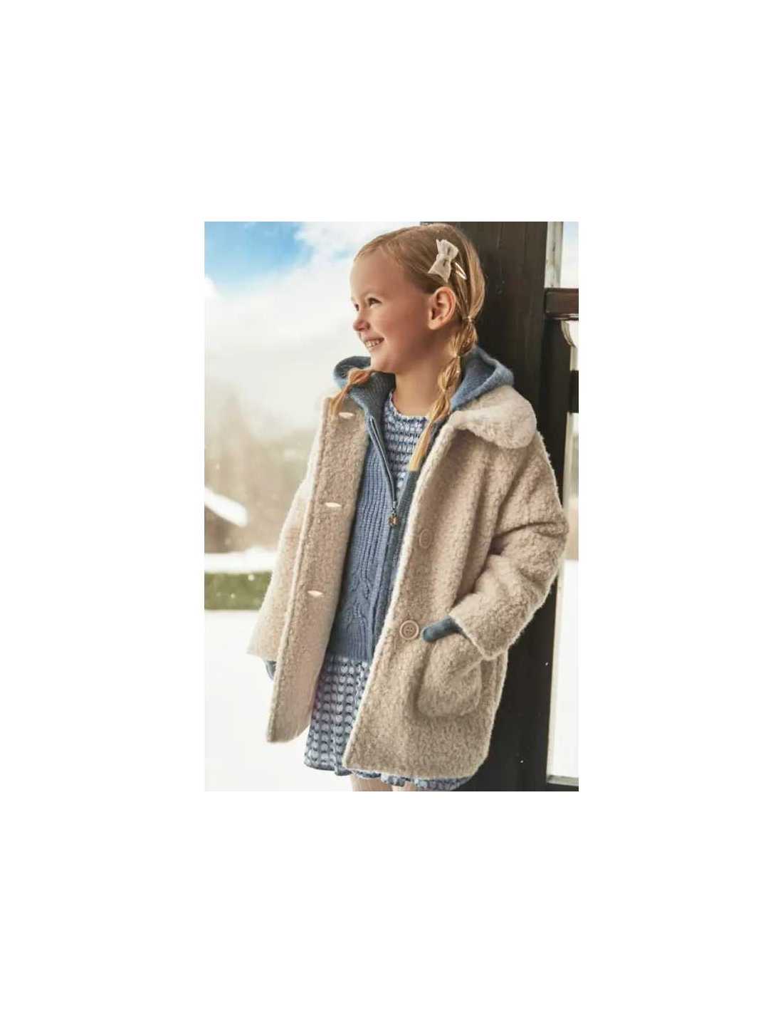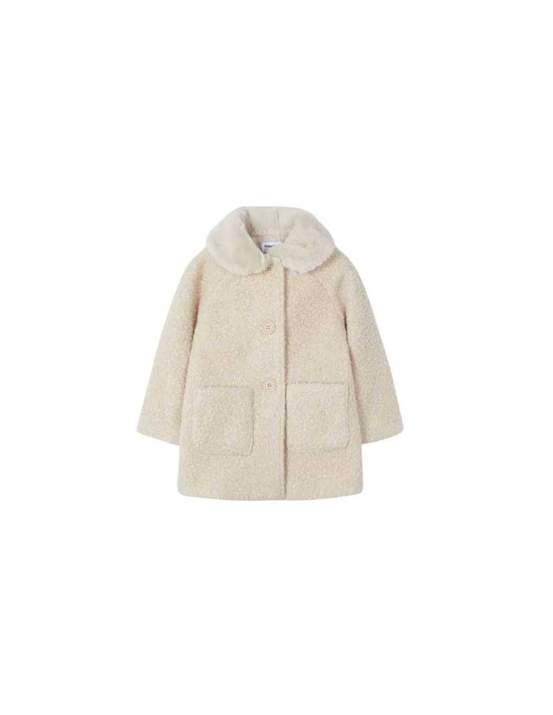 Abrigo de manga larga para niña. Cuello de pelo. Cierre con botones en la parte delantera. Divertido exterior de rizo perfecto para sus looks más abrigados. Suave forro interior de poliéster (excepto el color almendra, cuyo interior está confeccionado en popelín liso). Bolsillos funcionales en la parte delantera.
