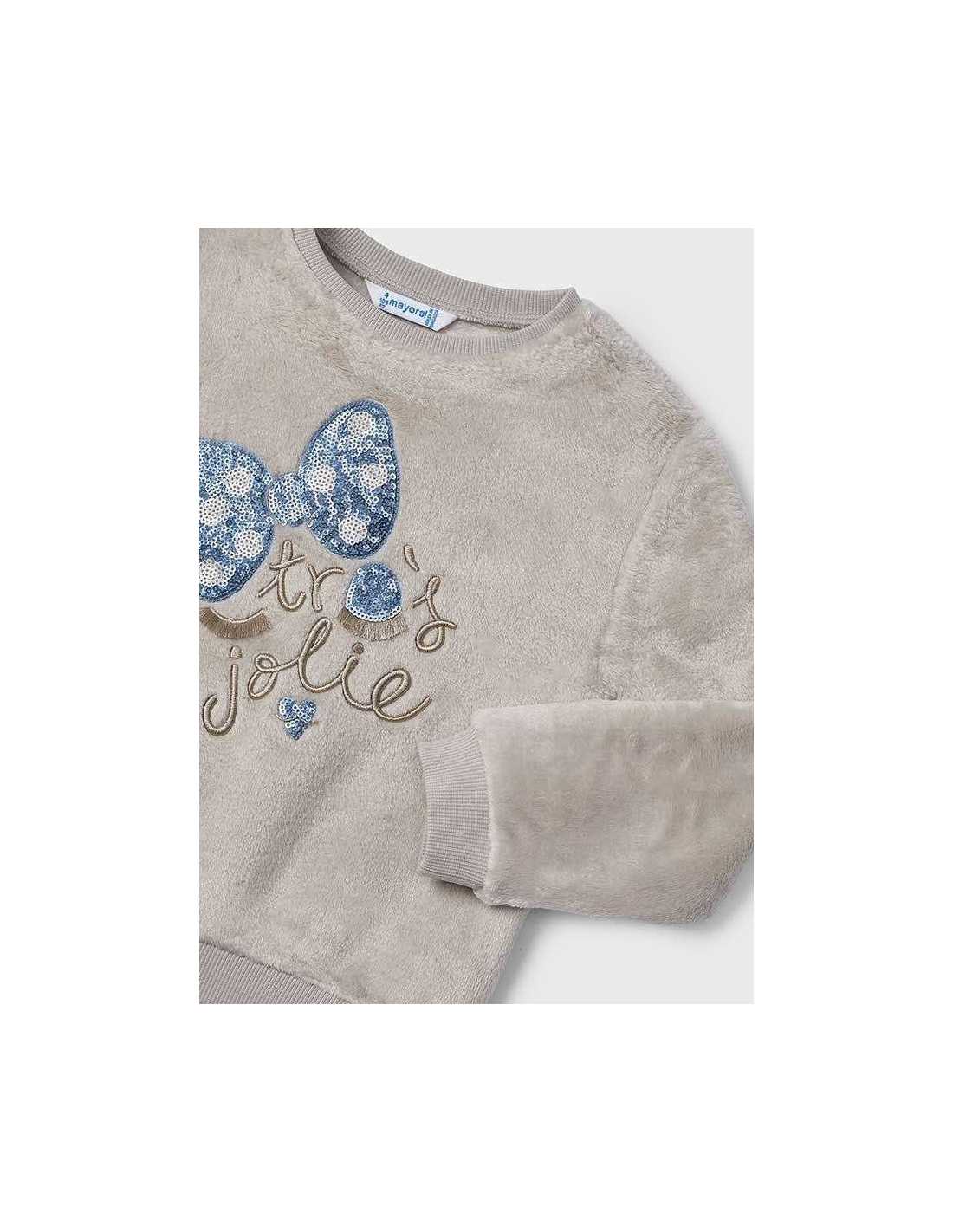 Sudadera de manga larga para niña. Suave y gustoso tejido exterior de pelo. Bajo y puños de punto elástico para un mejor ajuste. Elementos de adorno: bordado.