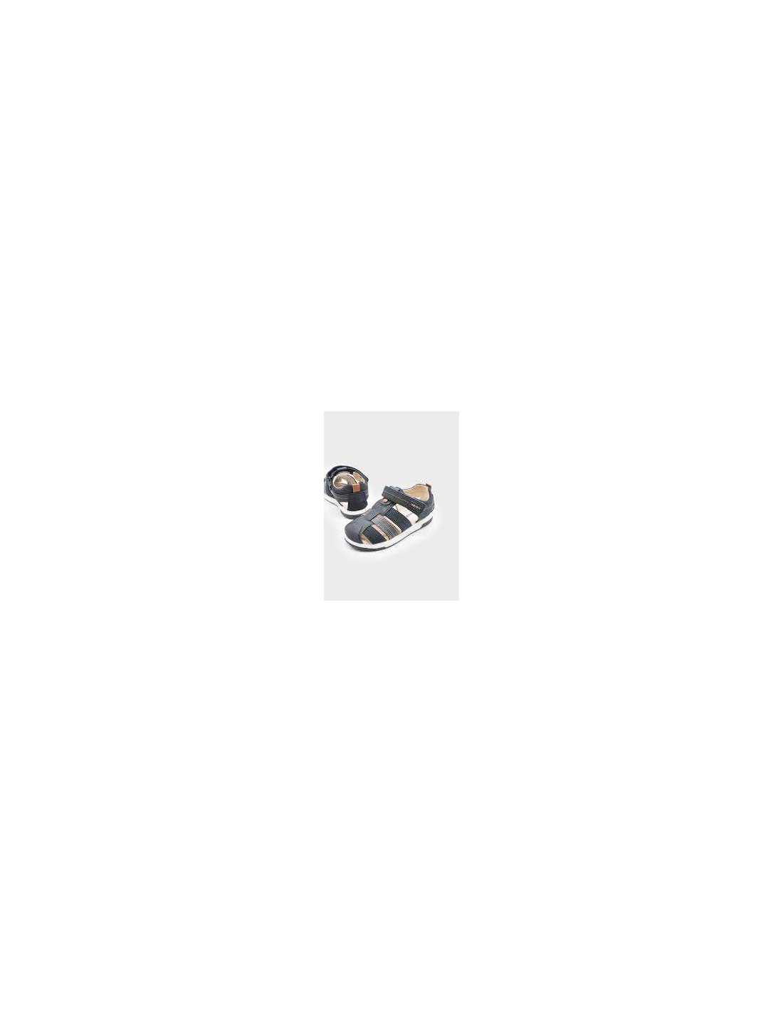 Zapato fabricado con piel curtida de manera sostenible. Cangrejeras para niño de estilo fresco y veraniego, perfectas para los días de calor. Material exterior combinado de piel y otros materiales. Todos nuestros zapatos se realizan con pieles libres de cromo. Forro interior y plantilla de piel. Todos nuestros zapatos se realizan con pieles libres de cromo. Suela de caucho ligera y flexible. Cierre con velcro ajustable que garantiza una perfecta sujeción del pie.