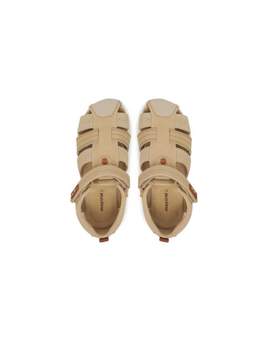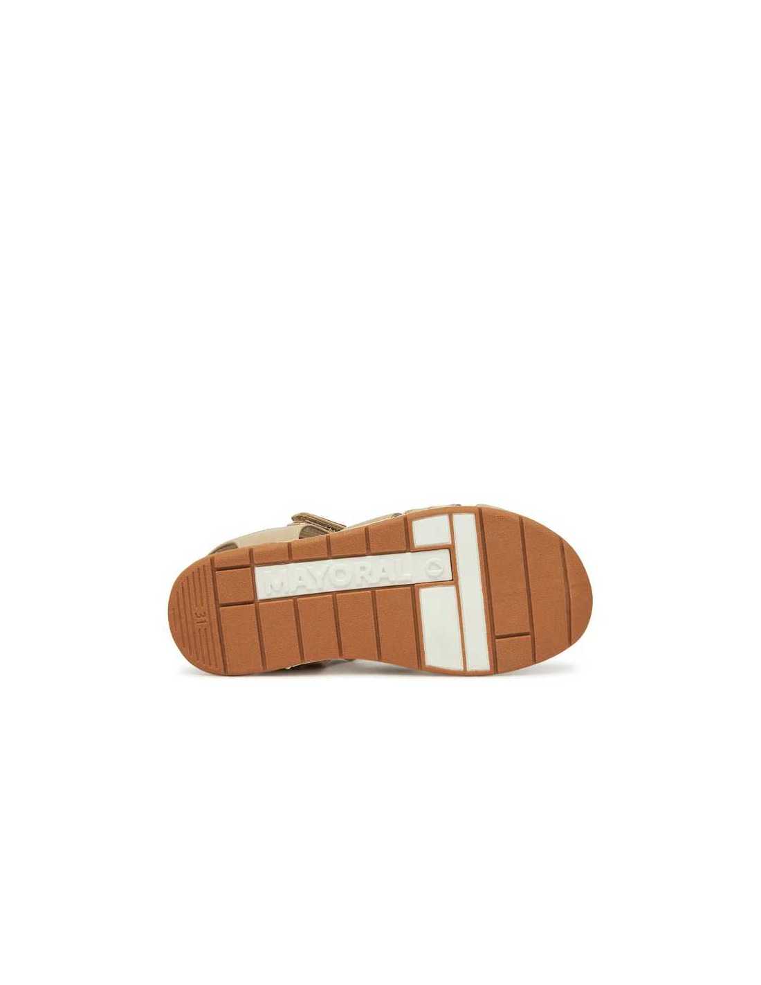 Zapato fabricado con piel curtida de manera sostenible. Cangrejeras para niño de estilo fresco y veraniego, perfectas para los días de calor. Material exterior combinado de piel y otros materiales. Todos nuestros zapatos se realizan con pieles libres de cromo. Forro interior y plantilla de piel. Todos nuestros zapatos se realizan con pieles libres de cromo. Suela de caucho ligera y flexible.