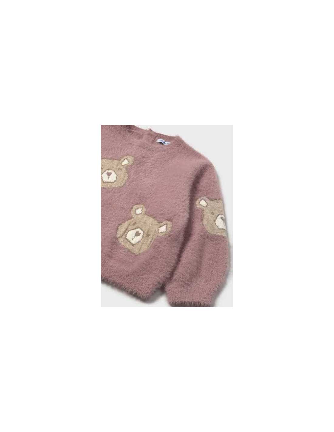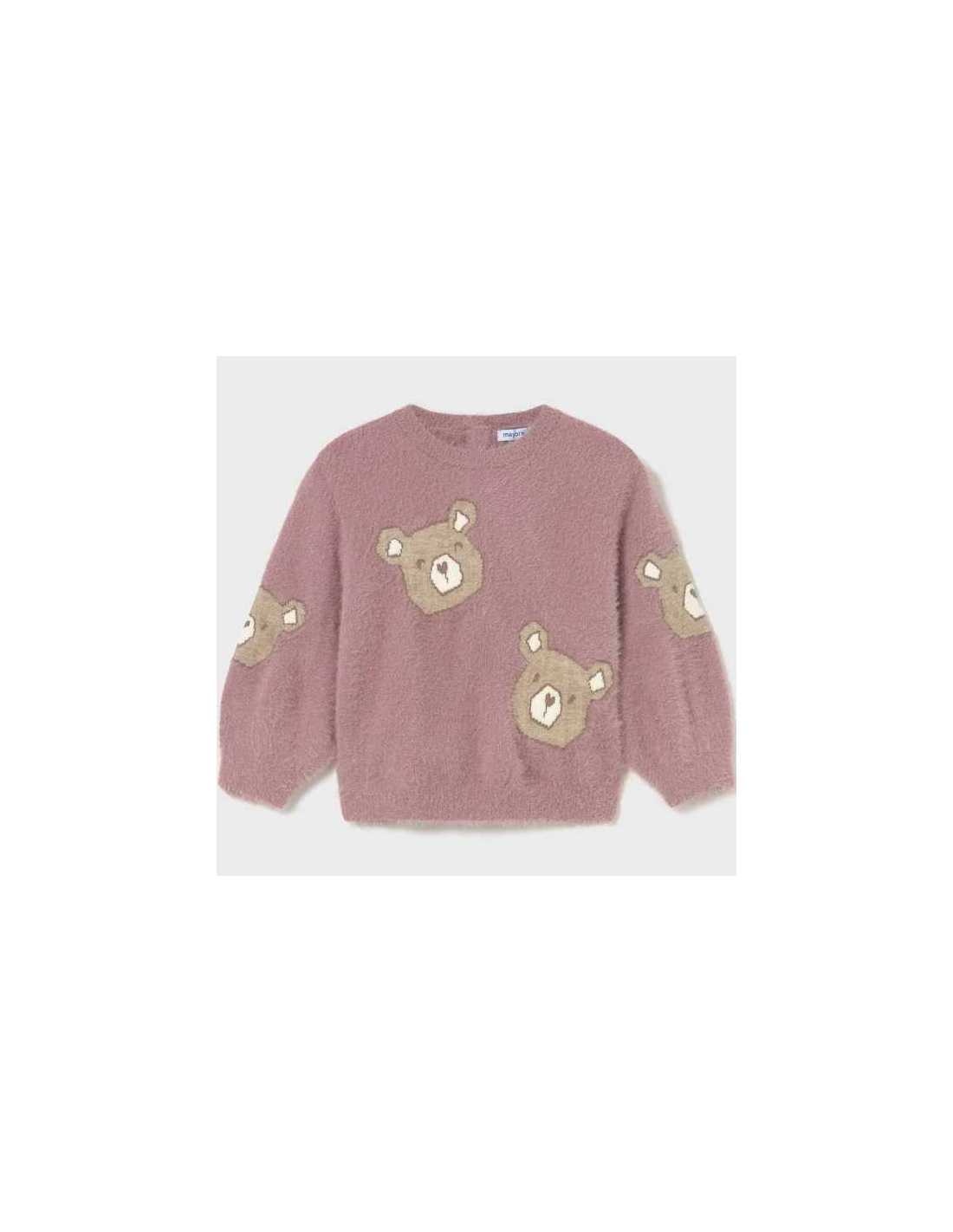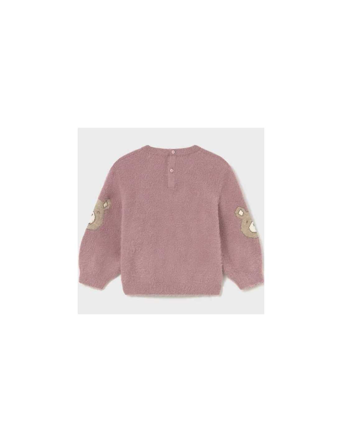 Jersey de manga larga para bebé. Cuello redondo. Cierre con botones en la espalda para facilitar la puesta de la prenda. Dibujo tejido con técnica intarsia.