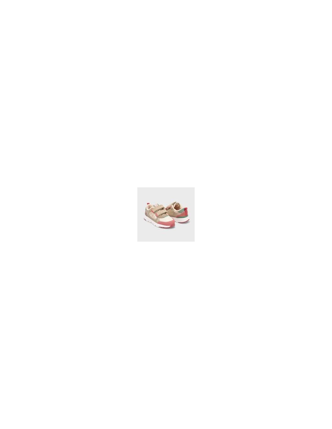 Zapatillas deportivas para niño, de gran versatilidad para sus aventuras diarias. Material exterior combinado de piel y otros materiales. Forro interior y plantilla de algodón transpirable. Suela gruesa de estilo actual. Cierre regulable con doble velcro para una puesta rápida y un mejor ajuste.
