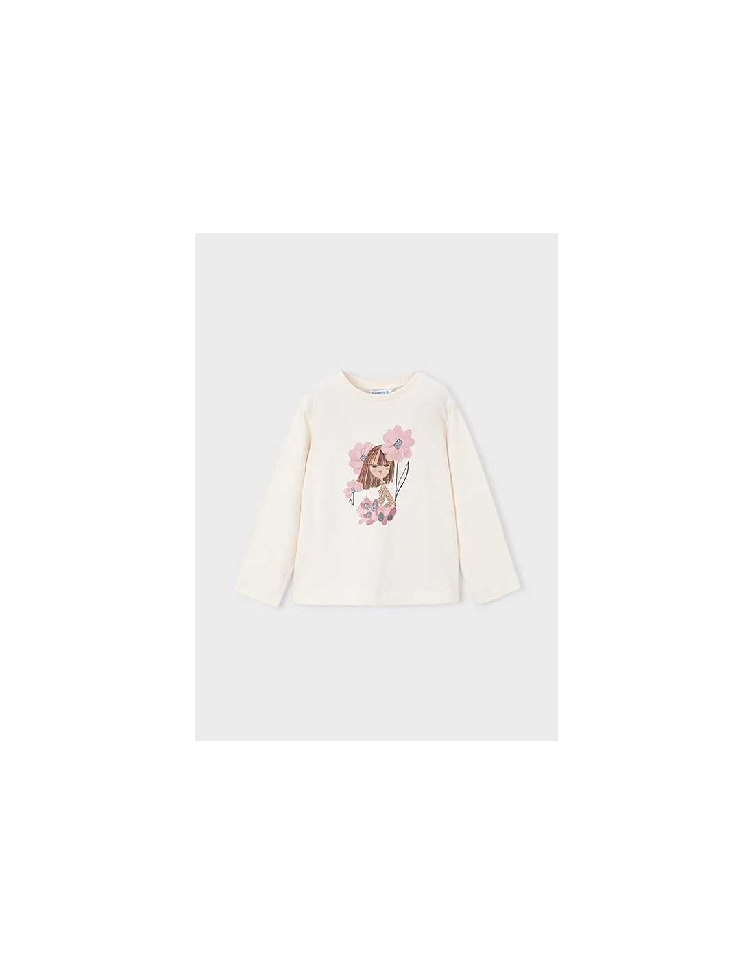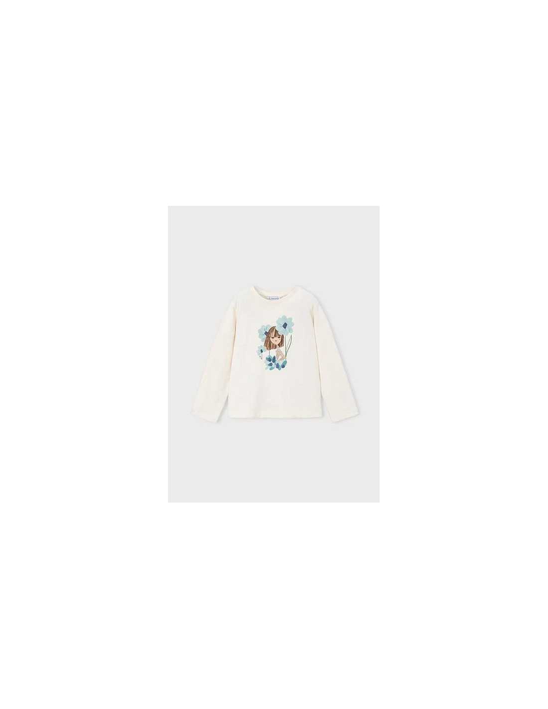 Camiseta de manga larga para niña. Cuello redondo. Elementos de adorno: glitter, serigrafía (print).