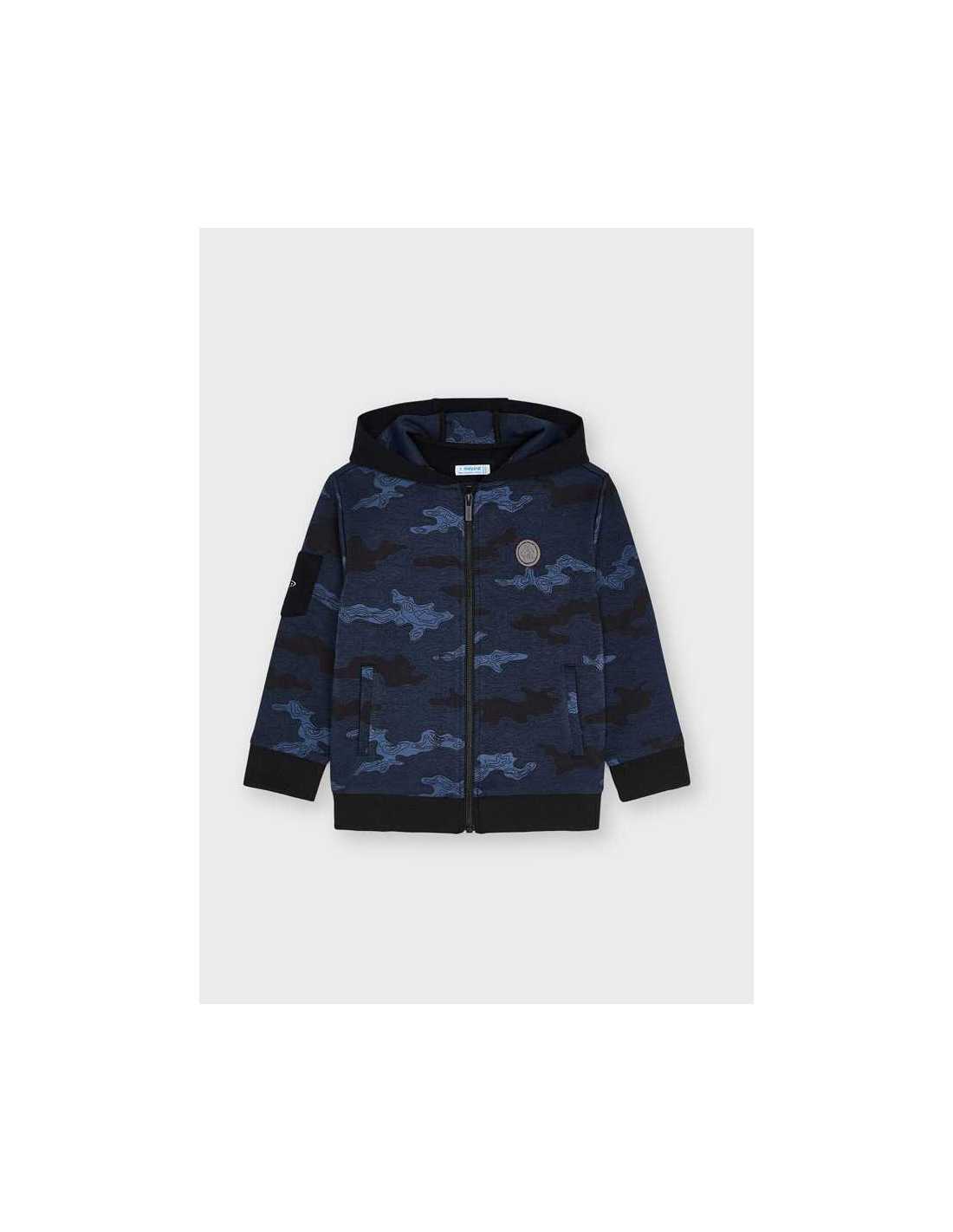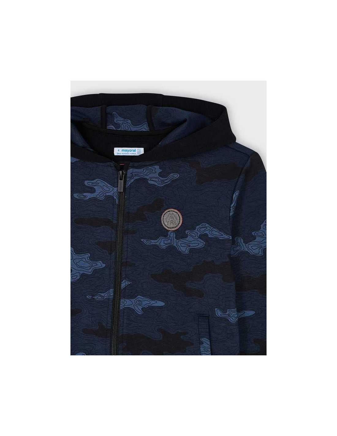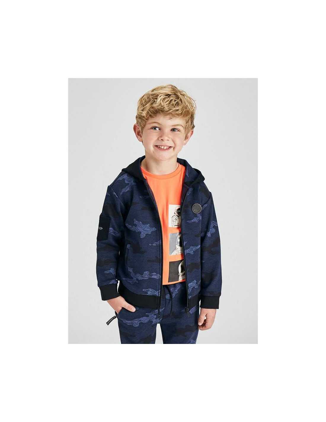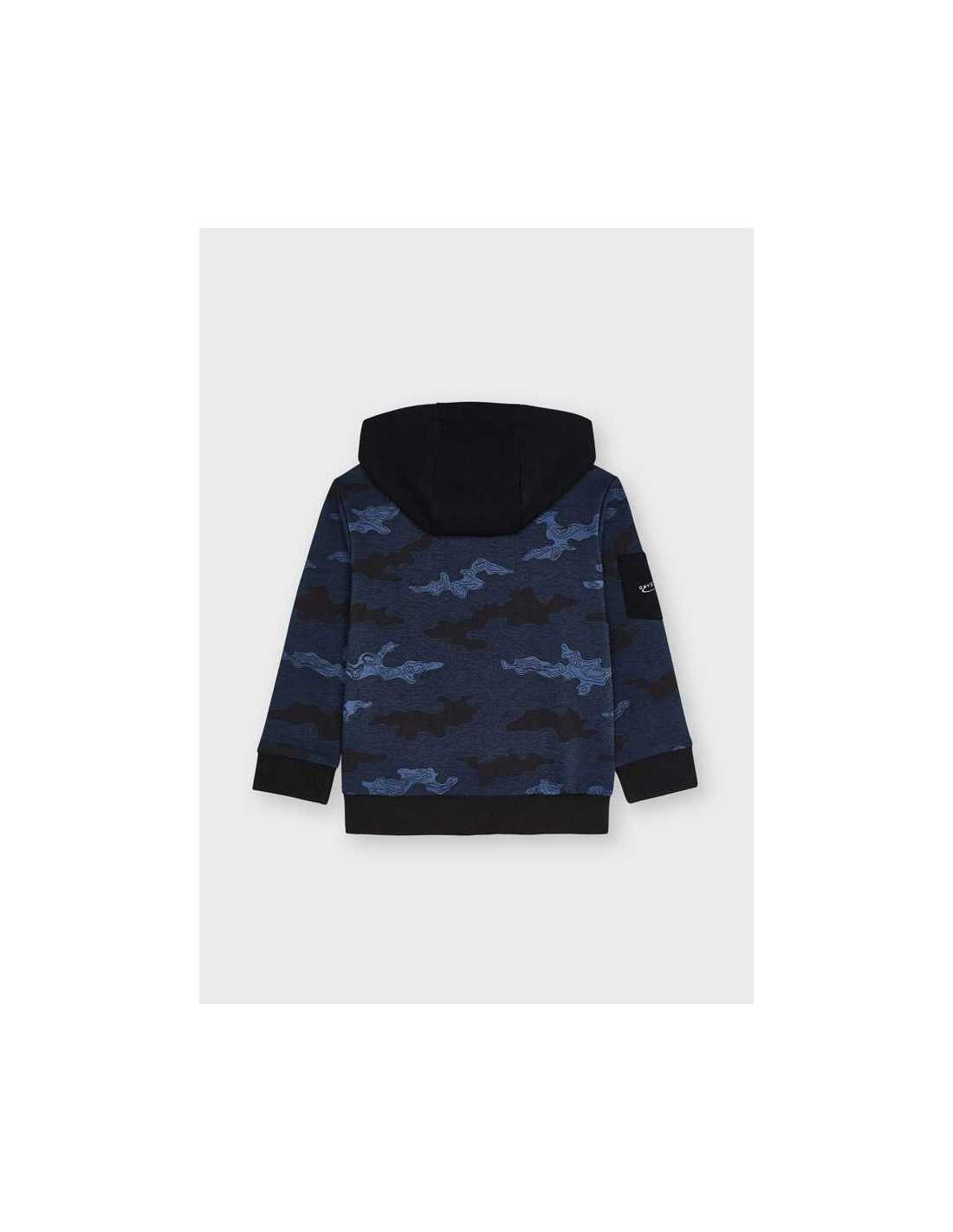 Canguro de manga larga para niño 2 a 9 Años con puños elásticos. Cuello con capucha. Cierre central delantero con cremallera. Bajo con goma elástica para un mejor ajuste. Estampado de camuflaje.