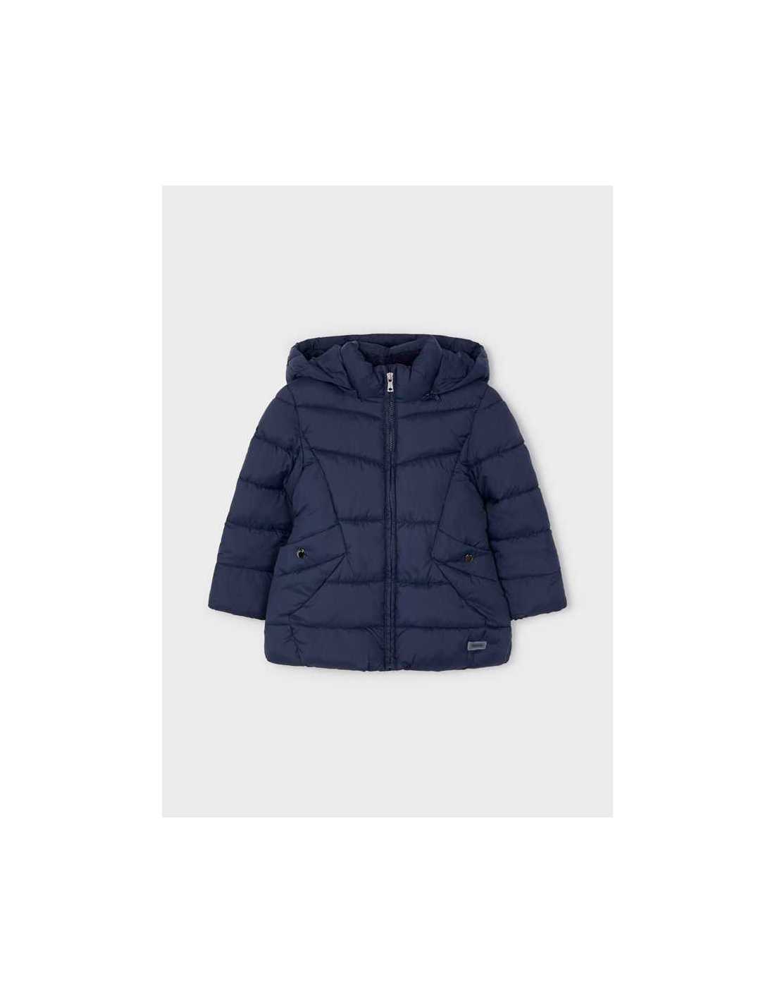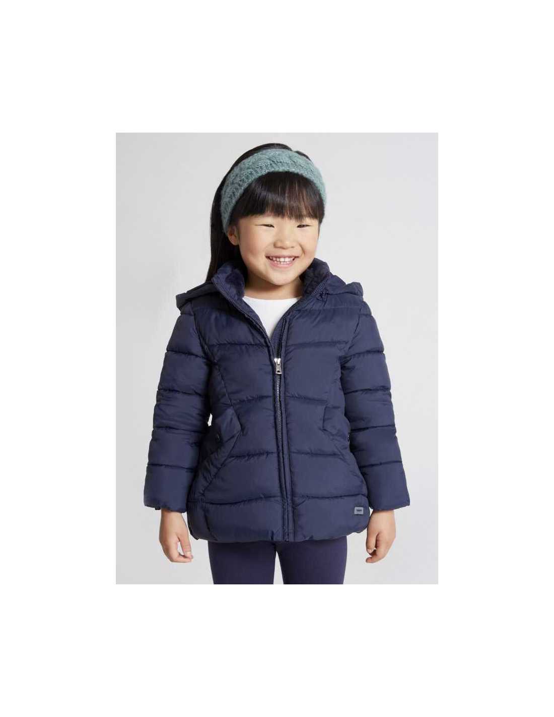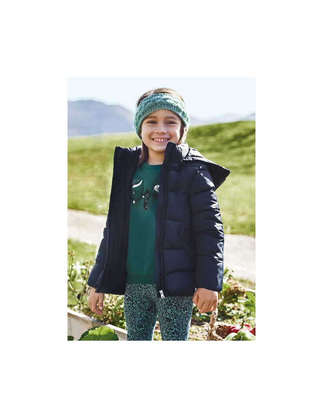 Relleno de la prenda ECOFRIENDS 100% Poliester reciclado. Chaquetón de manga larga para niña. Modelo con capucha. Cierre central delantero con cremallera.