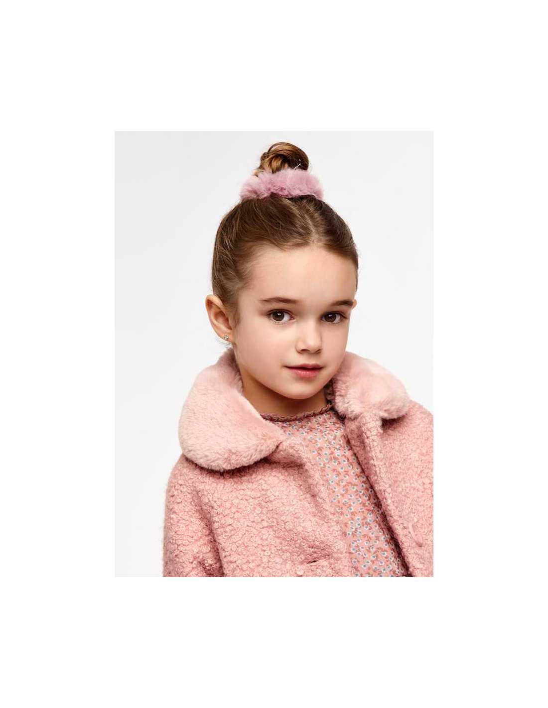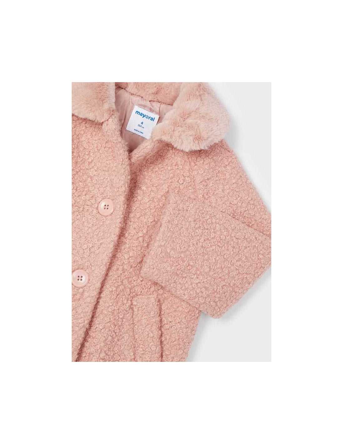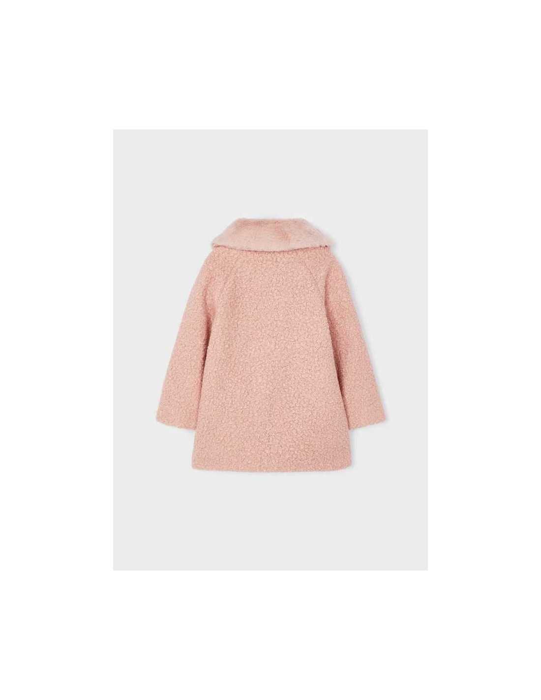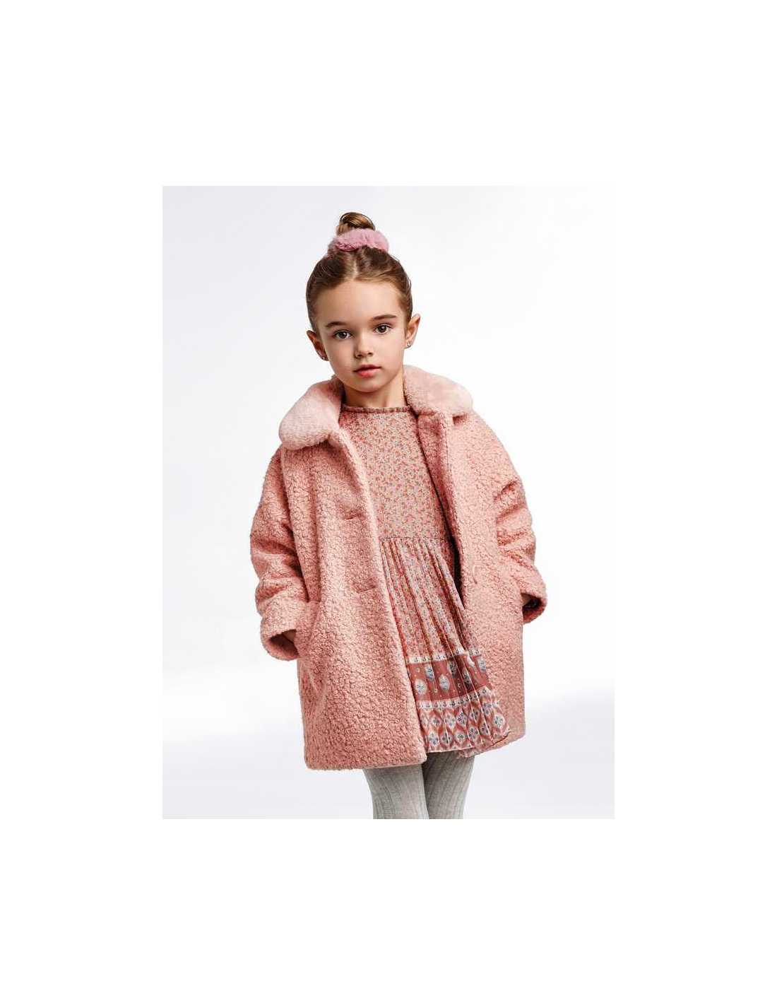 Abrigo de manga larga para niña. Cierre con botones en la parte delantera.