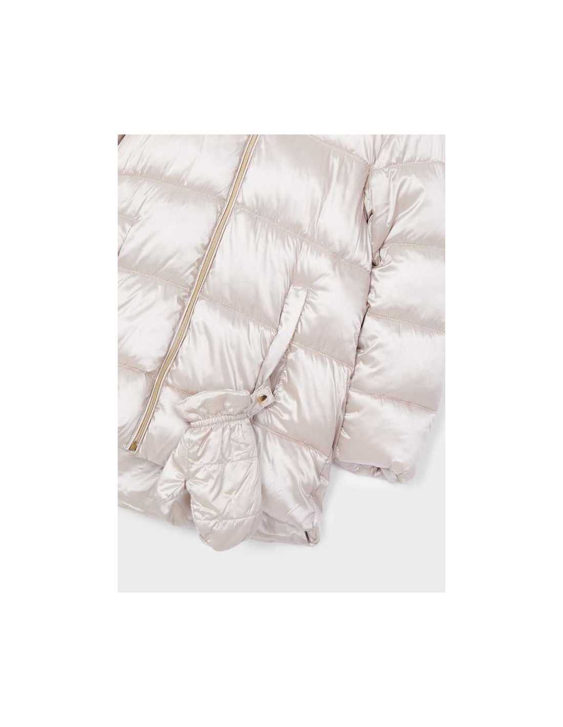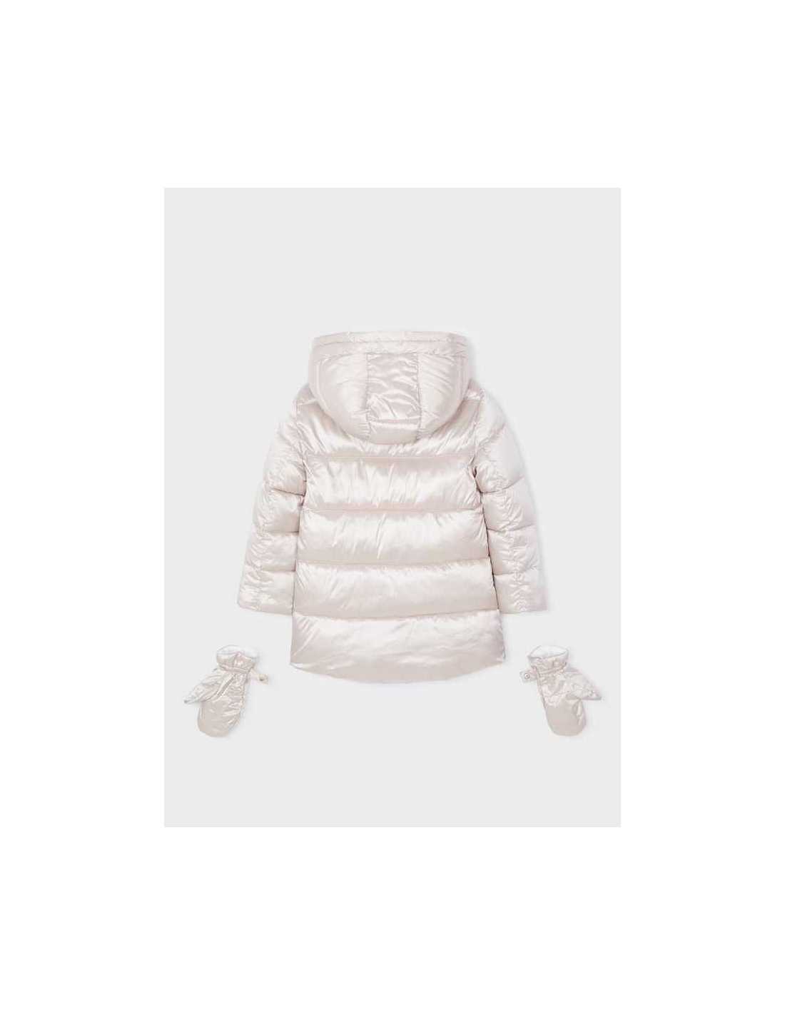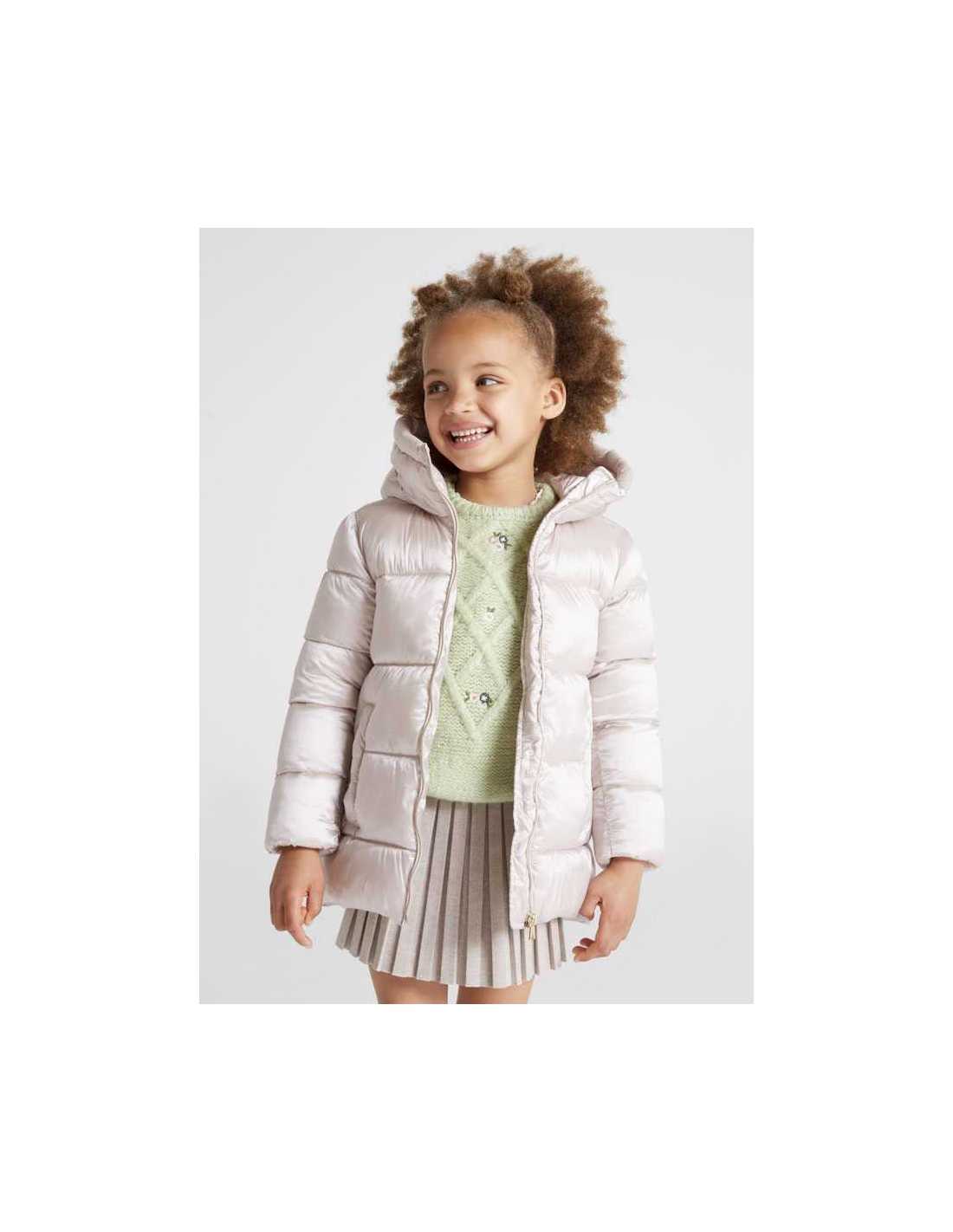 Relleno de la prenda ECOFRIENDS 100% Poliester reciclado. Chaquetón de manga larga para niña. Modelo con capucha. Cierre central delantero con cremallera.