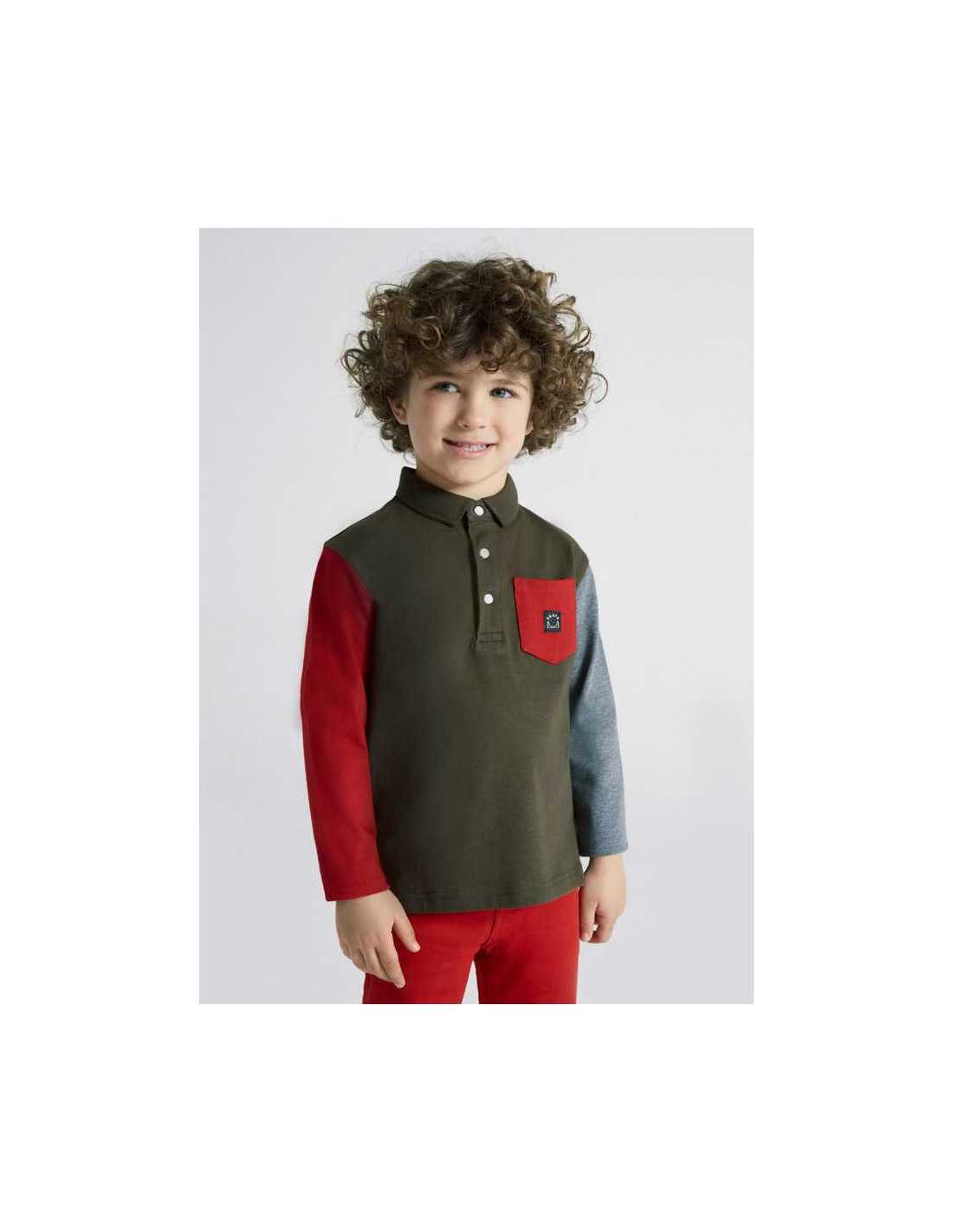 Polo de manga corta para chico con detalles a contraste. Cuello de polo con detalles en distinto color. Tejido 100% algodón. Elementos de adorno: apliques decorativos.