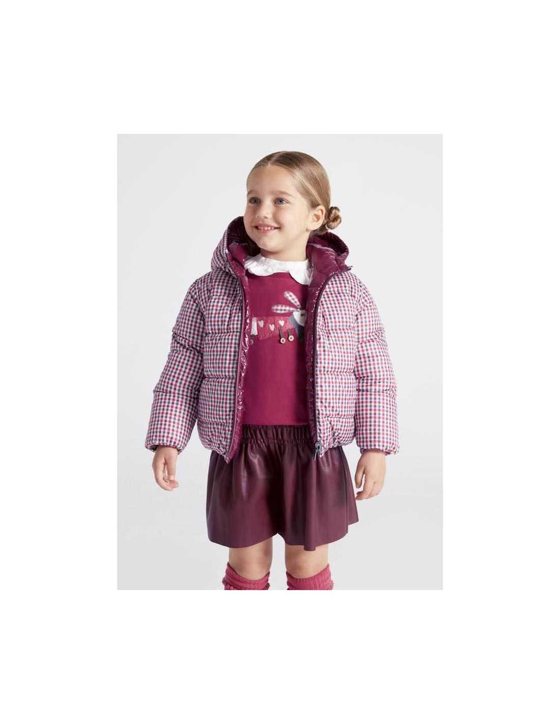 Relleno de la prenda ECOFRIENDS 100% Poliester reciclado. Chaquetón de manga larga para niña. Modelo con capucha. Cierre central delantero con cremallera.