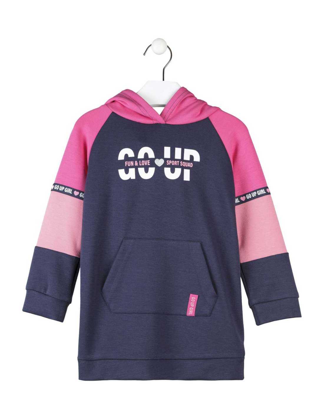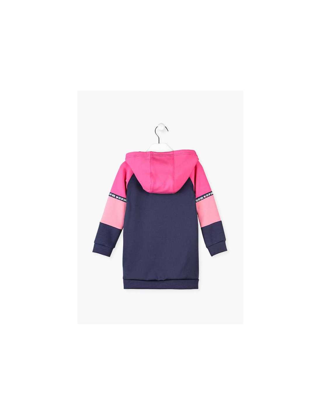 VESTIDO DE INFANTIL NIÑA DE MANGA LARGA DE INTERLOCK CON CAPUCHA Y PRINT DELANTERO