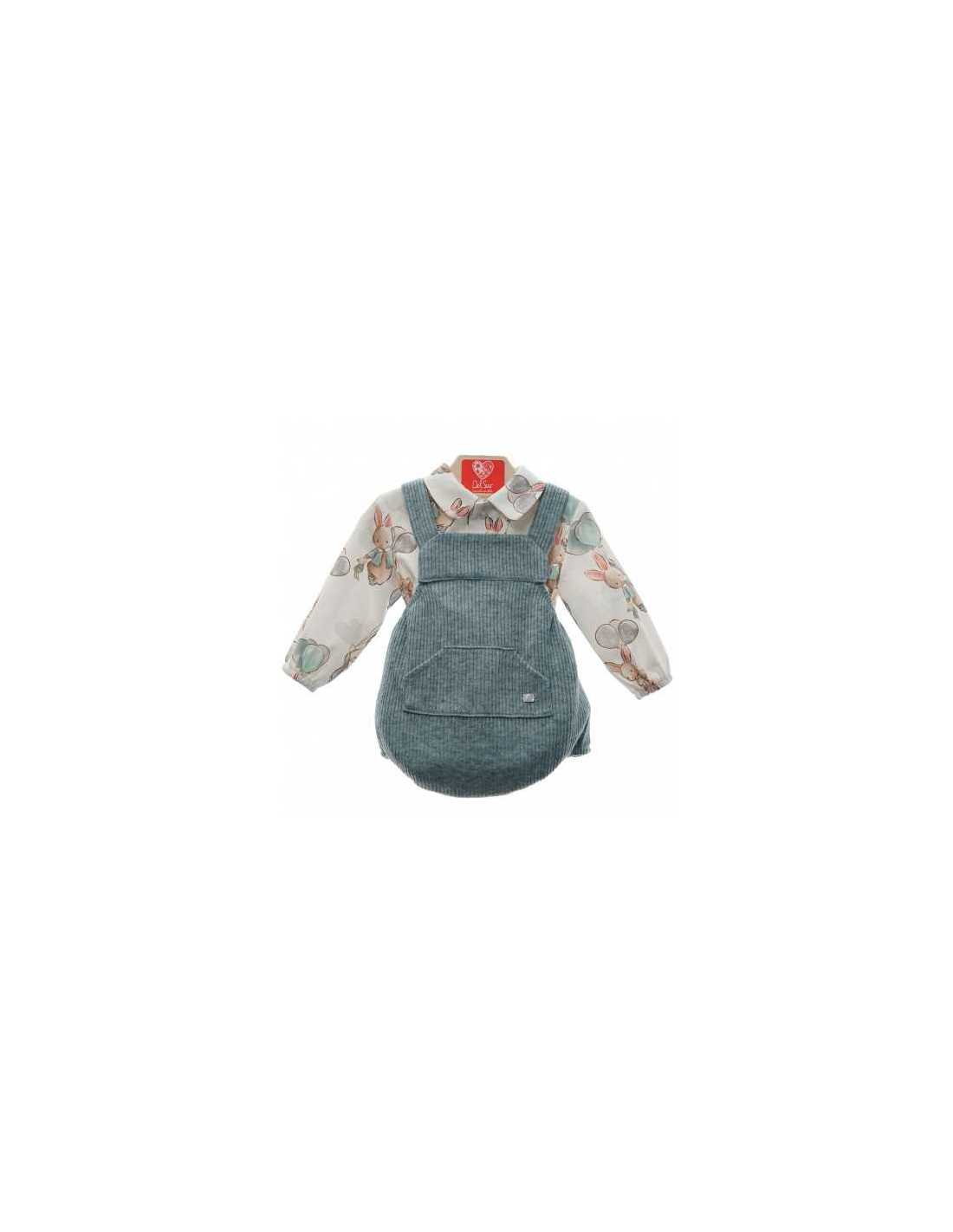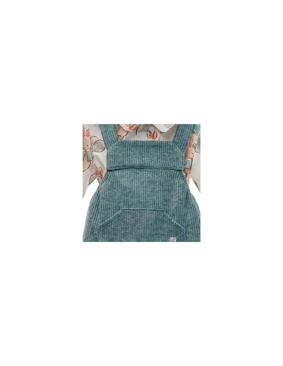 Conjunto peto micropana con camisa estampada de conejitos de India.