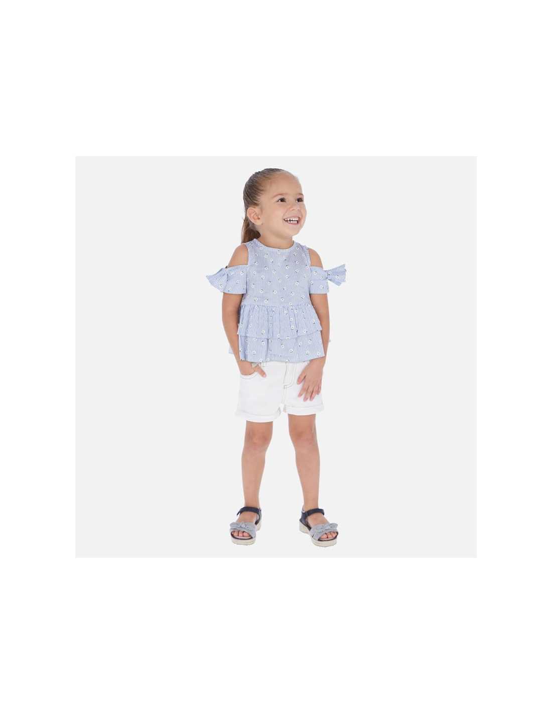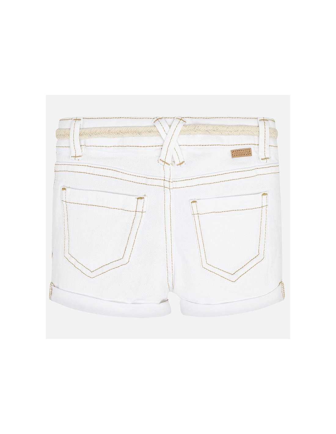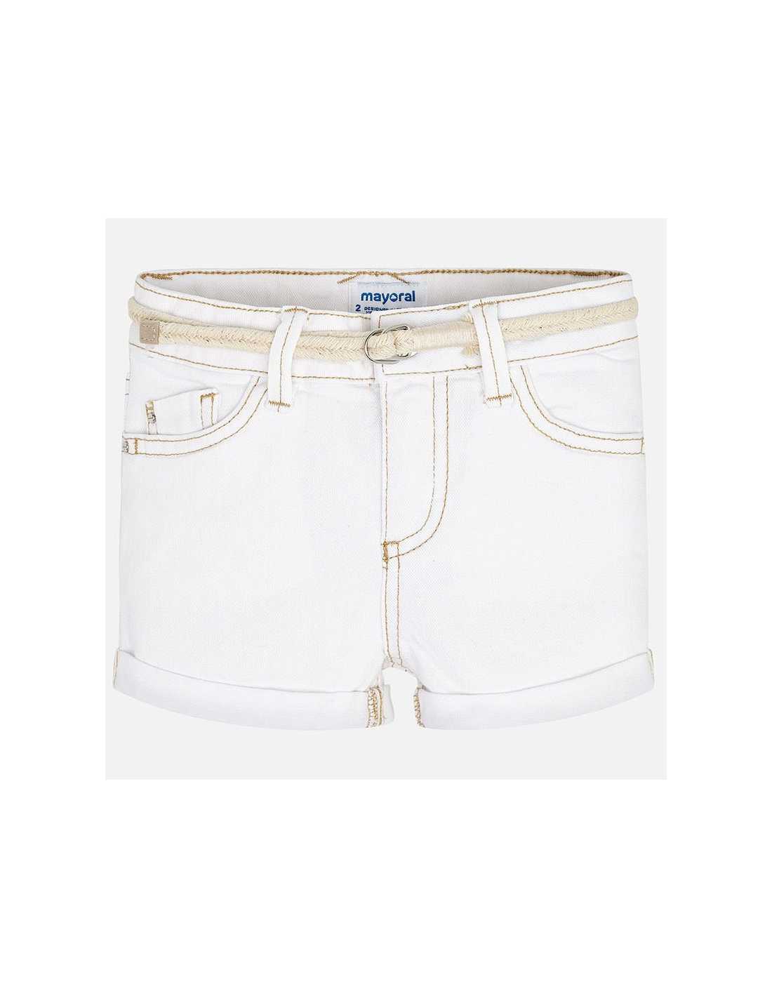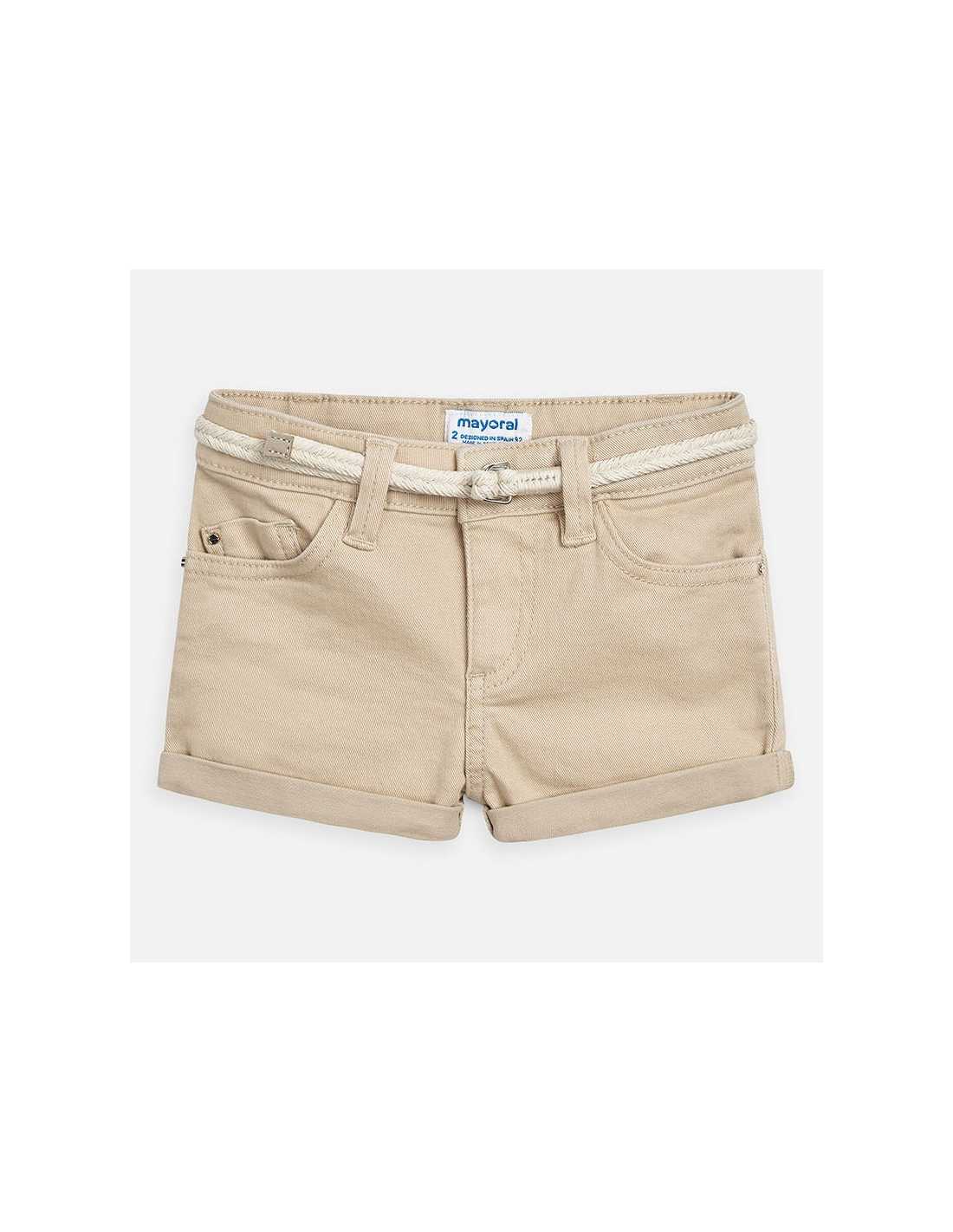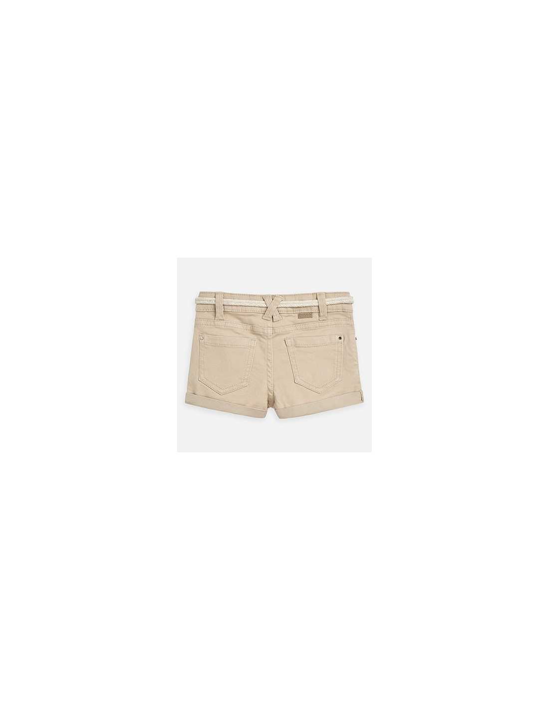 Pantalón corto de tipo short para niña. Cintura con goma elástica y cierre con cremallera y botón. Cómodo tejido de sarga de gran resistencia. Detalle de bajo con vuelta. Cinturón extraíble a la cintura. Este artículo presenta un tintado especial que hace que su acabado pueda no ser uniforme o que el color pueda variar con los lavados.