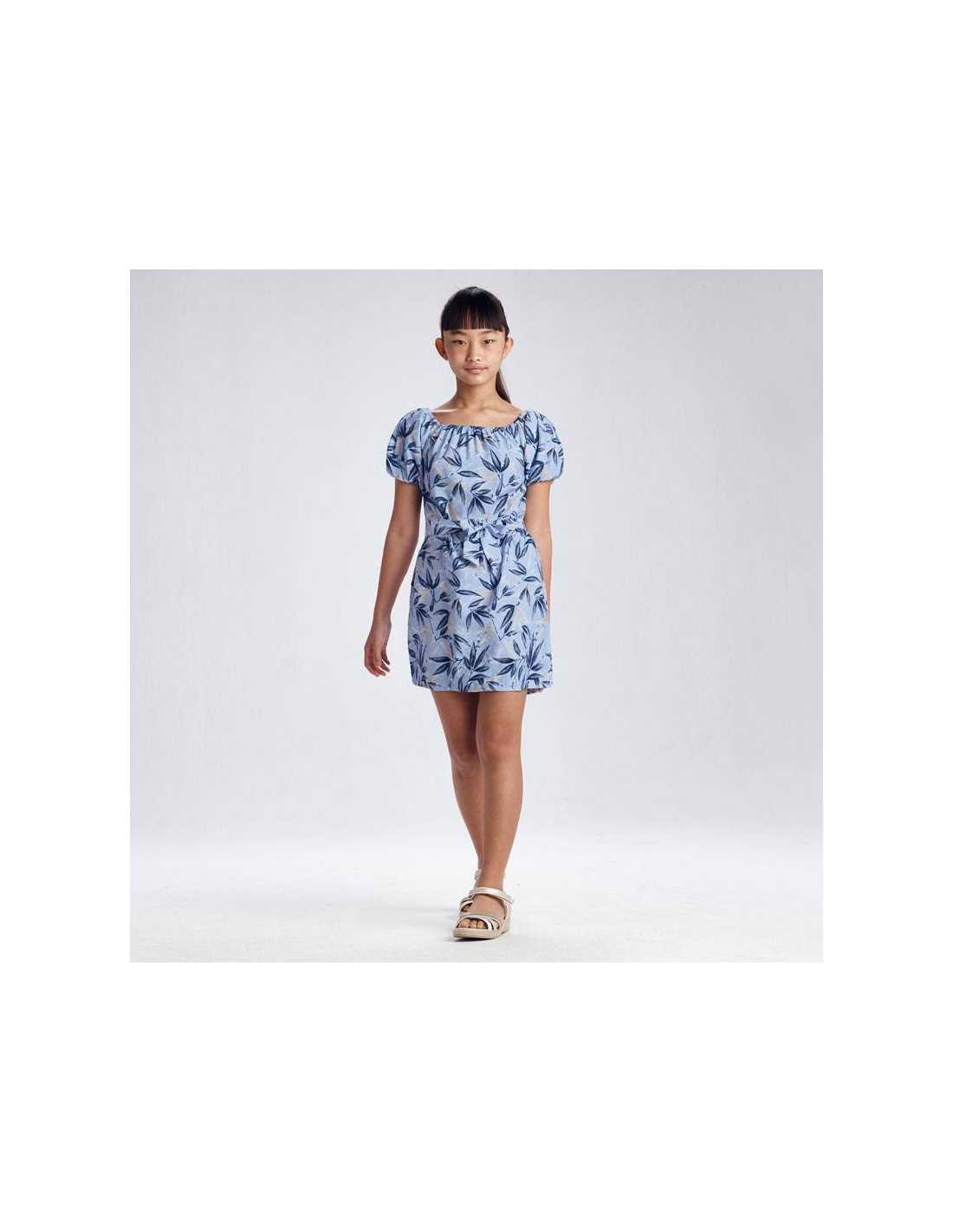 Vestido de manga corta para chica 8 a 16 Años. Tejido fluido para una máxima comodidad en el día a día. Cinturón extraíble a la cintura. Bolsillos en los laterales. Estampado con decoración floral.