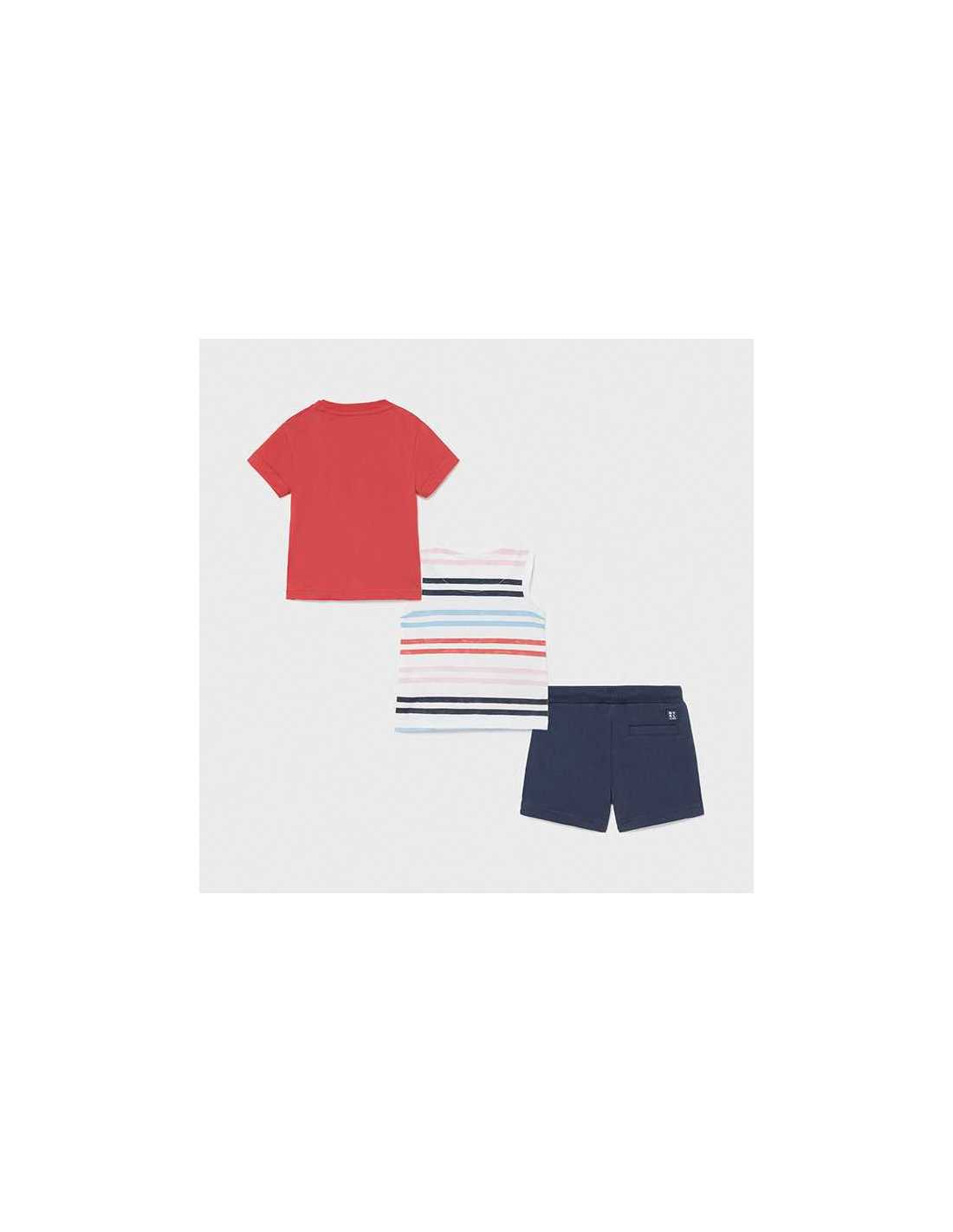 Conjunto de tres piezas para bebé niño de 6 a 36 meses formado por dos camisetas y un pantalón corto coordinado.