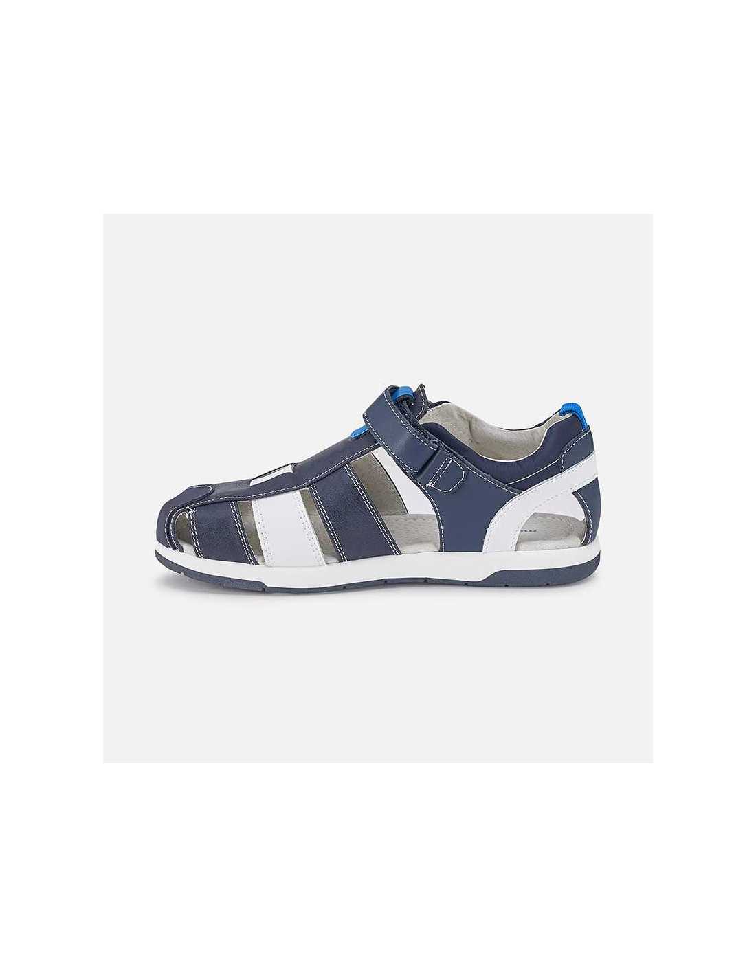 Cangrejeras para chico 8 a 16 Años de estilo fresco y veraniego. Calzado con forro interior de algodón y plantilla de piel. Revestimiento exterior combinado de piel y materiales a contraste. Suela de goma antideslizante para afianzar la pisada. Cierre con banda de velcro ajustable una perfecta sujeción del pie. Puntera con refuerzo de piel para mejorar la resistencia y durabilidad del calzado.
