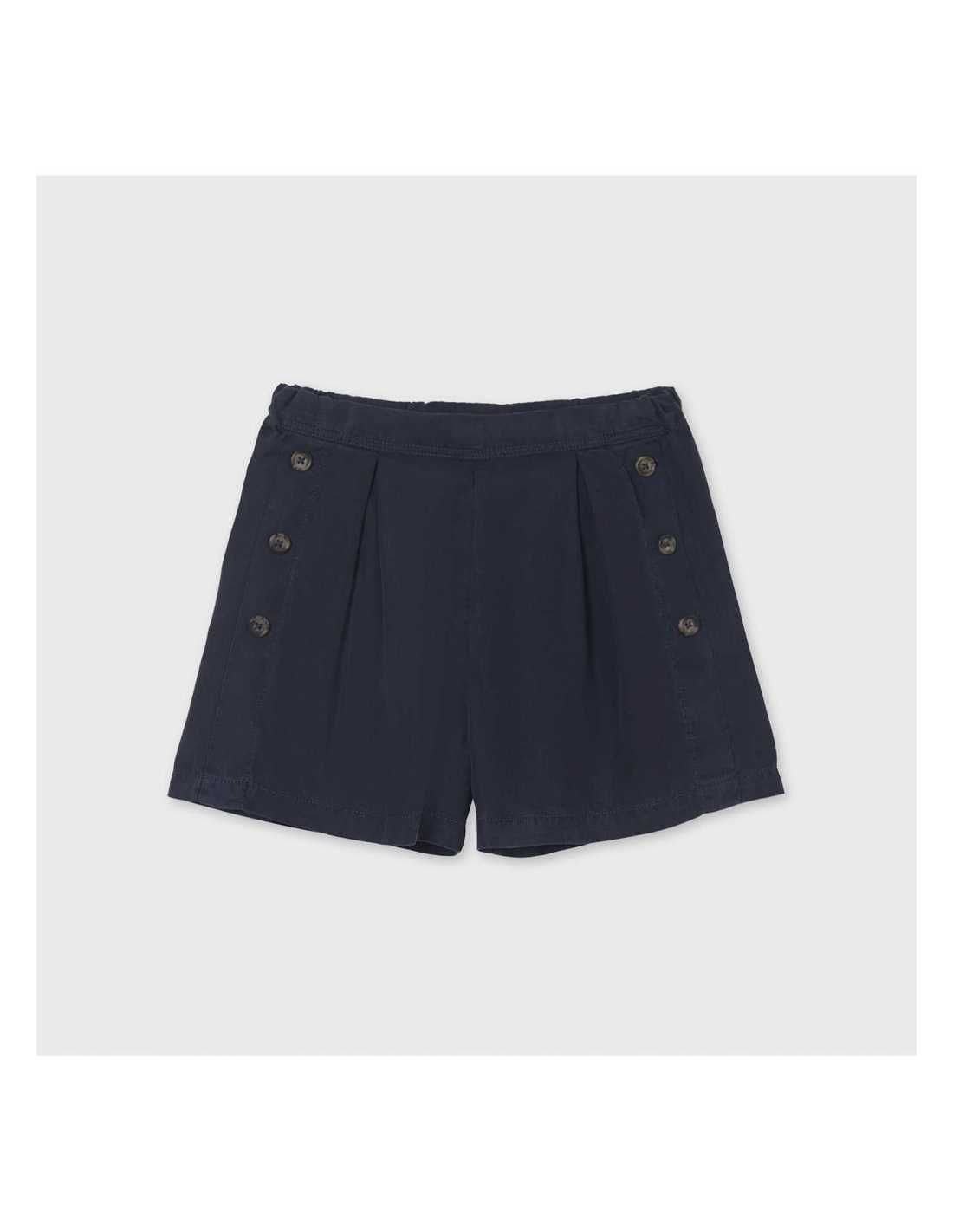 Prenda ECOFRIENDS, 100% lyonell sostenible. Pantalón de tipo short para chica de 8 a 16 años. Goma elástica regulable en la cintura para ajustar el talle. Tejido fluido y elástico para una máxima comodidad en el día a día. Elementos de adorno: botones decorativos. Este artículo presenta un tintado especial que hace que su acabado pueda no ser uniforme o que el color pueda variar con los lavados.