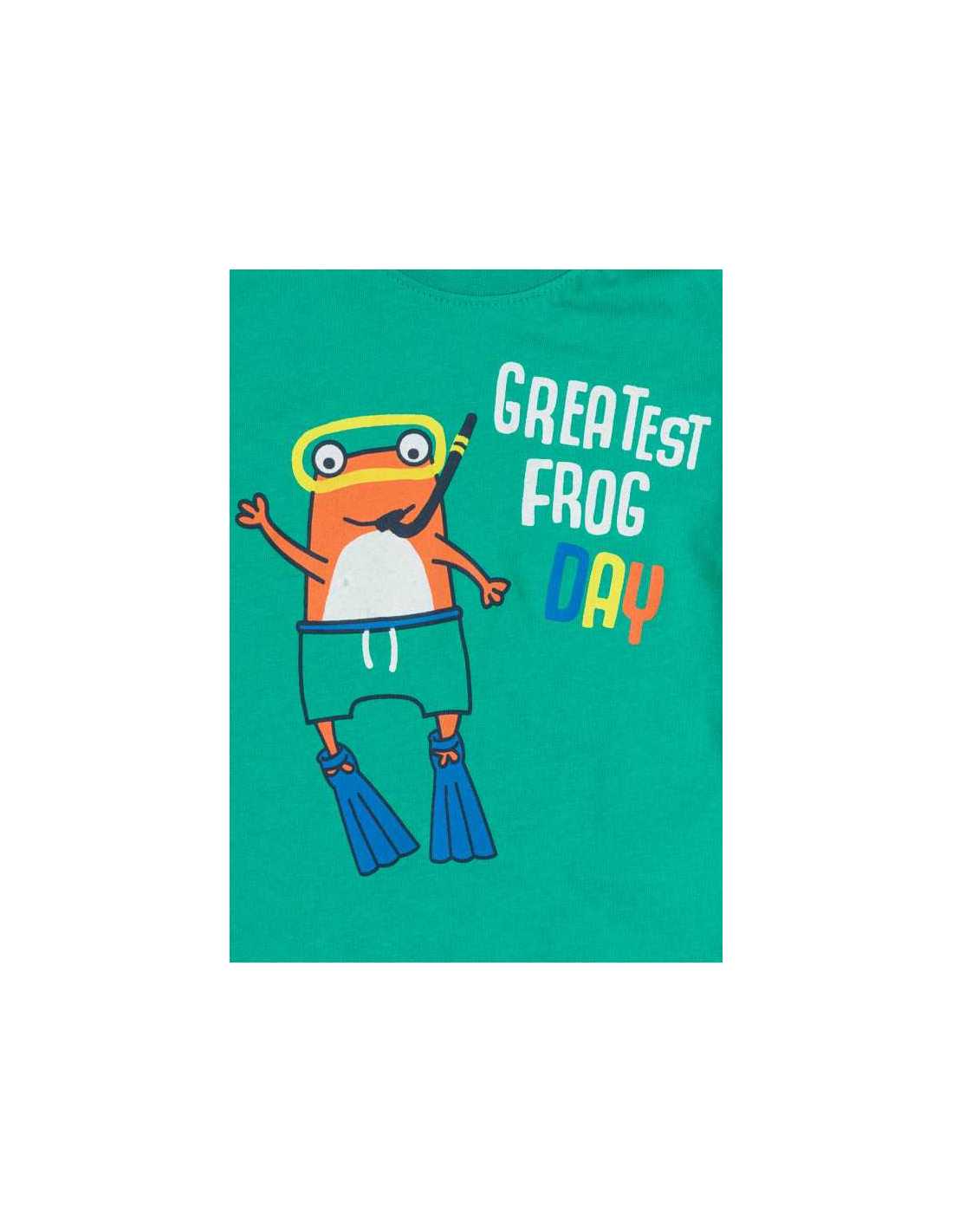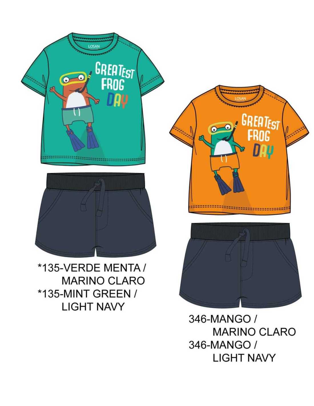 CONJUNTO DE BEBE NIÑO: CAMISETA DE MANGA CORTA EN PUNTO LISO CON PRINT Y BERMUDA DE PUNTO LISO CON CORDON.