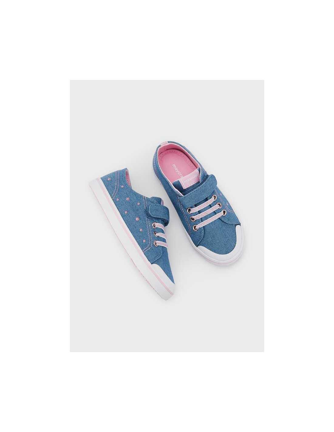 Zapatillas deportivas, de gran versatilidad para sus aventuras diarias. Calzado con forro interior y plantilla de algodón transpirable. Revestimiento exterior de algodón. Suela de goma antideslizante y flexible. Cierre con velcro ajustable que garantiza una perfecta sujeción del pie. Refuerzo de goma en la puntera para mejorar la resistencia y durabilidad del calzado. Elementos de adorno: cordones elásticos decorativos. Este modelo también está disponible en las tallas 31 a 35 y en las tallas 36 a 38.