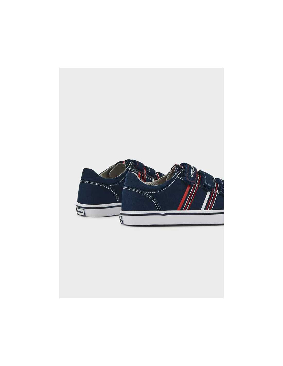 Zapatillas deportivas, de gran versatilidad para sus aventuras diarias. Calzado con forro interior y plantilla de algodón transpirable. Revestimiento exterior de algodón. Suela de goma antideslizante y flexible. Cierre ajustable con triple velcro que permite un calce fácil, práctico y regulable. Refuerzo de goma en la puntera para mejorar la resistencia y durabilidad del calzado.