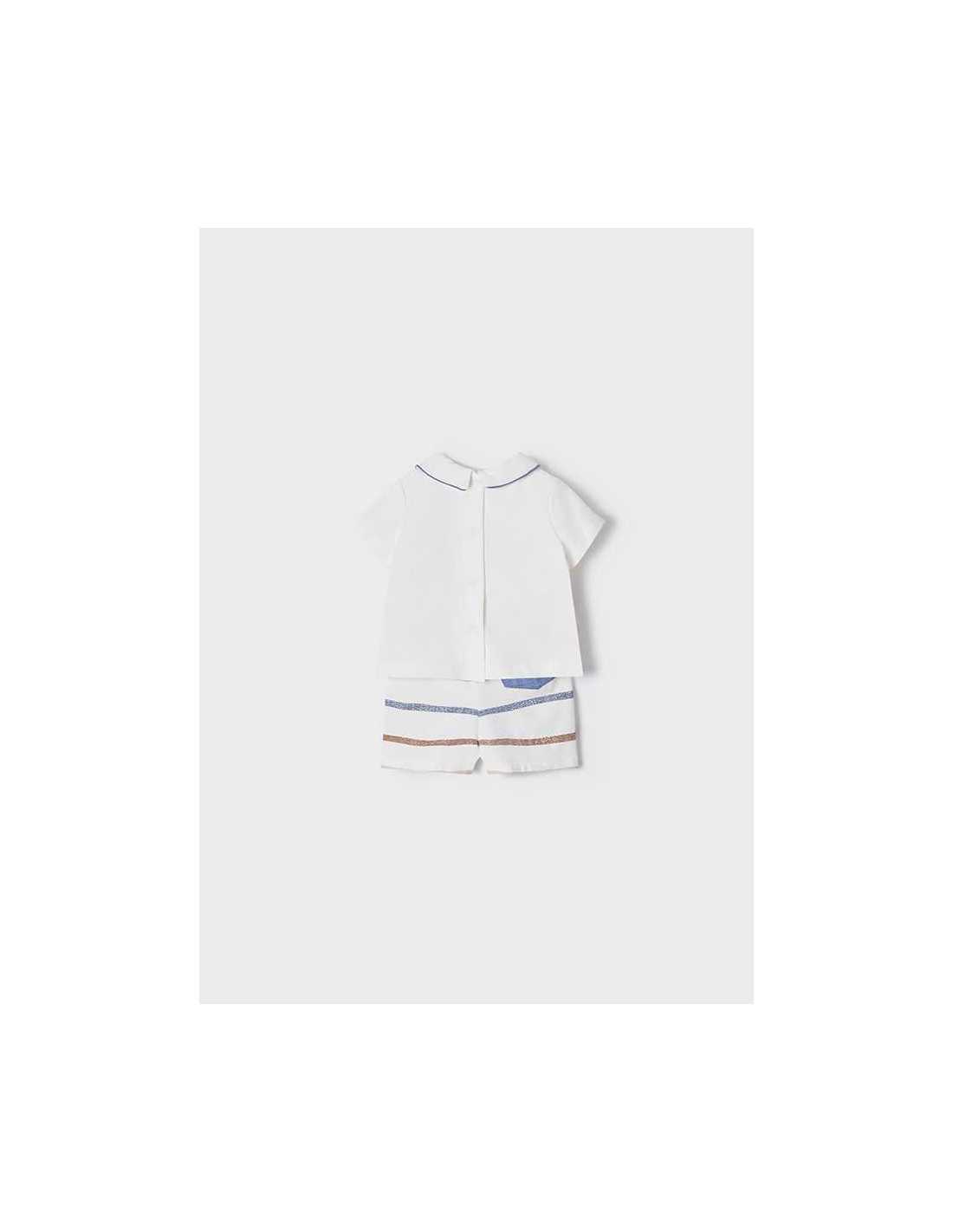 Pantalón de tipo short para recién nacido niño. Goma elástica en la cintura para un mejor ajuste. Cómodo tejido de punto. Diseño con delicados motivos infantiles.