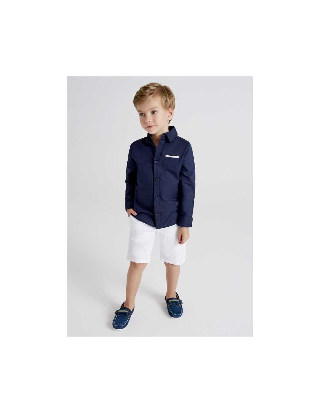 Pantalón de tipo bermuda para niño. Goma elástica regulable en la cintura para ajustar el talle. Cómodo tejido de sarga de gran resistencia. Bolsillos en los laterales. Por motivos de seguridad, las tallas pequeñas (2-5 años) no llevarán cremallera en la bragueta, sino que será simulada.