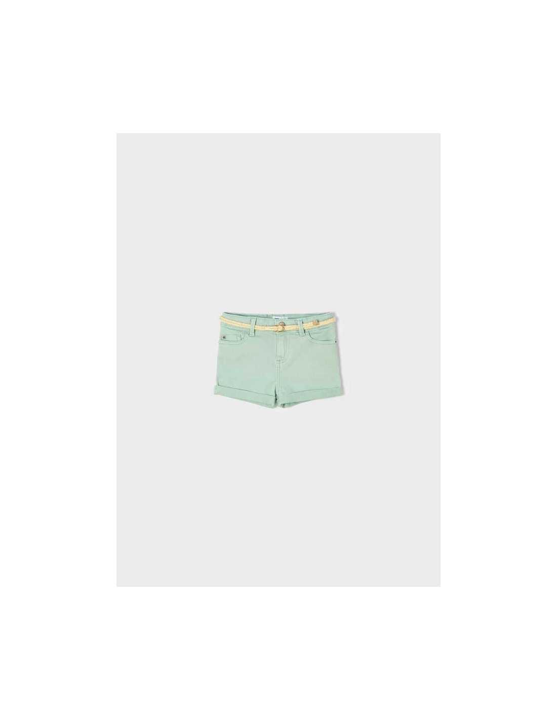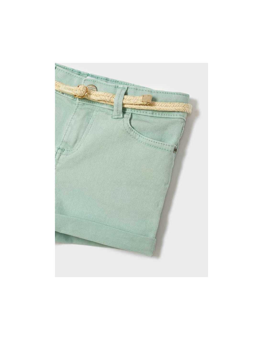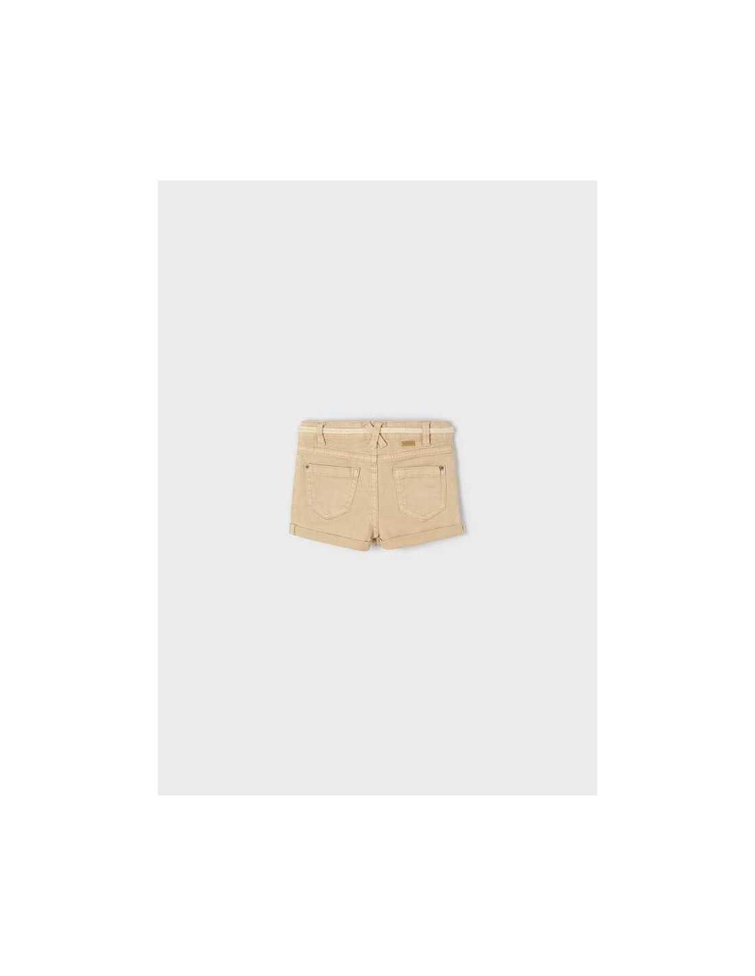 Pantalón de tipo short para niña. Goma elástica regulable en la cintura para ajustar el tall. Detalle de bajo con vuelta. Cinturón extraíble a la cintura. Bolsillos funcionales en el delantero y en la parte trasera de la prenda. Este artículo presenta un tintado especial que hace que su acabado pueda no ser uniforme o que el color pueda variar con los lavados.