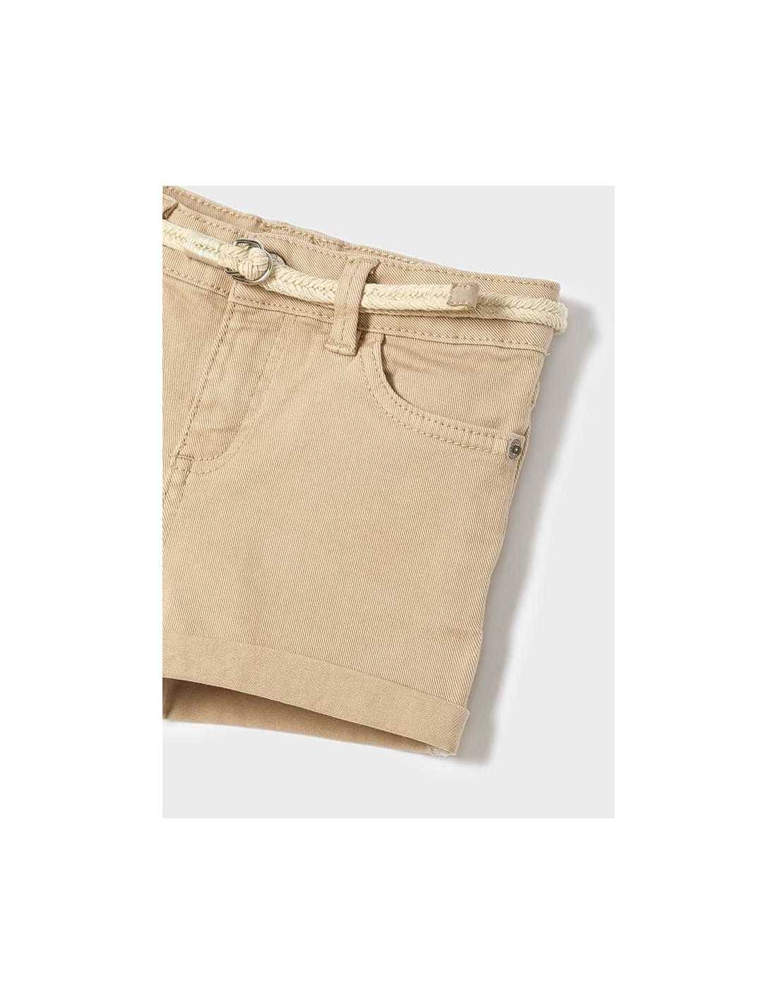 Pantalón de tipo short para niña. Goma elástica regulable en la cintura para ajustar el talle. Cómodo tejido de sarga de gran resistencia. Detalle de bajo con vuelta. Cinturón extraíble a la cintura. Bolsillos funcionales en el delantero y en la parte trasera de la prenda. Este artículo presenta un tintado especial que hace que su acabado pueda no ser uniforme o que el color pueda variar con los lavados.