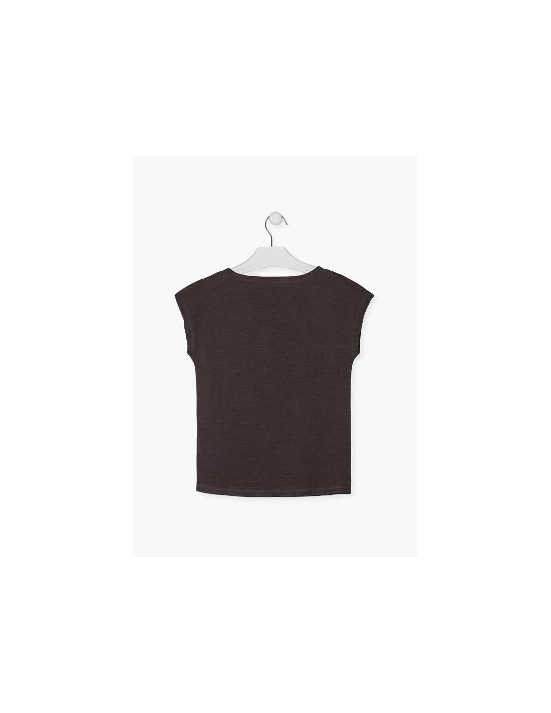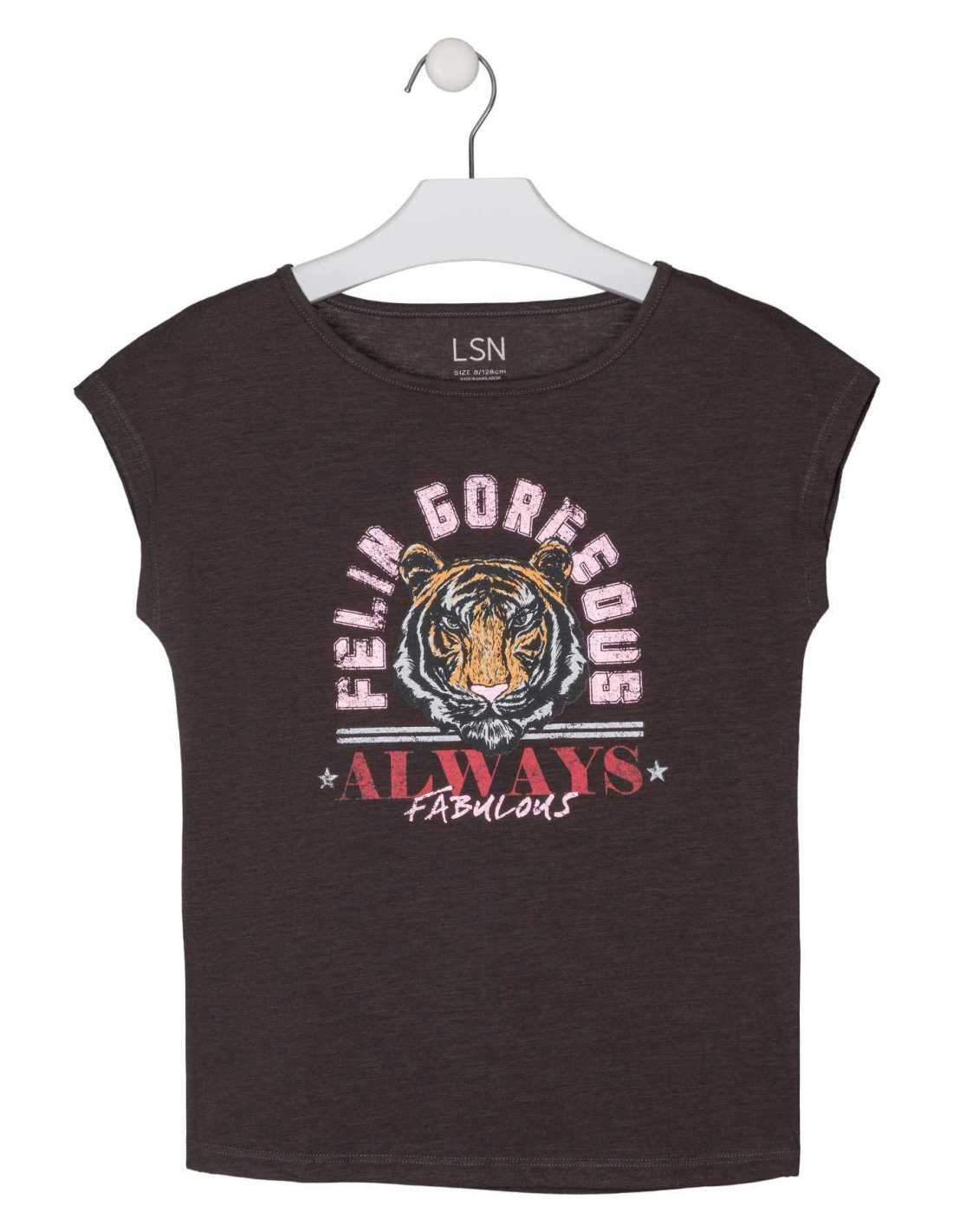 CAMISETA JUNIOR DE MANGA CORTA EN PUNTO LISO CON PRINT DELANTERO.
