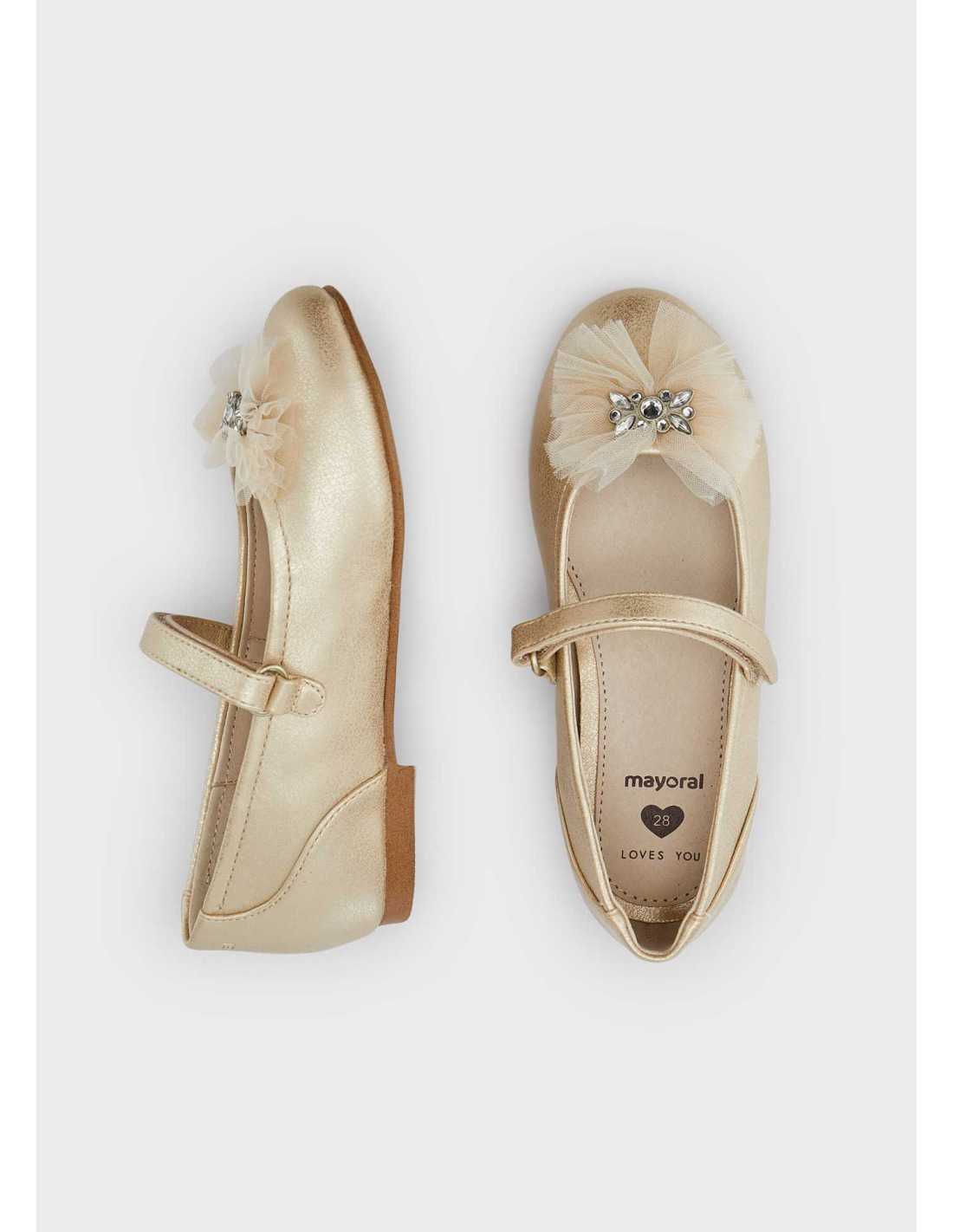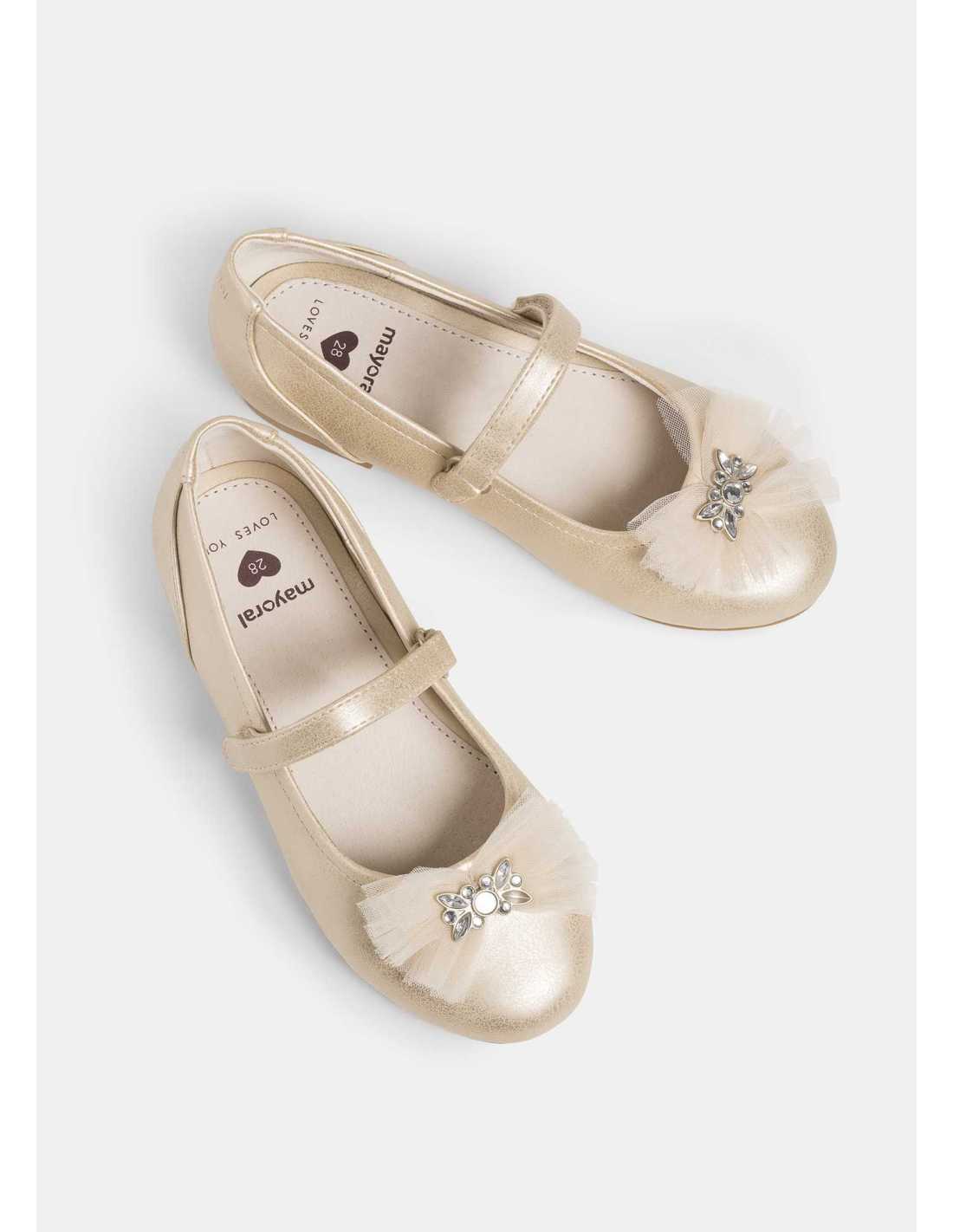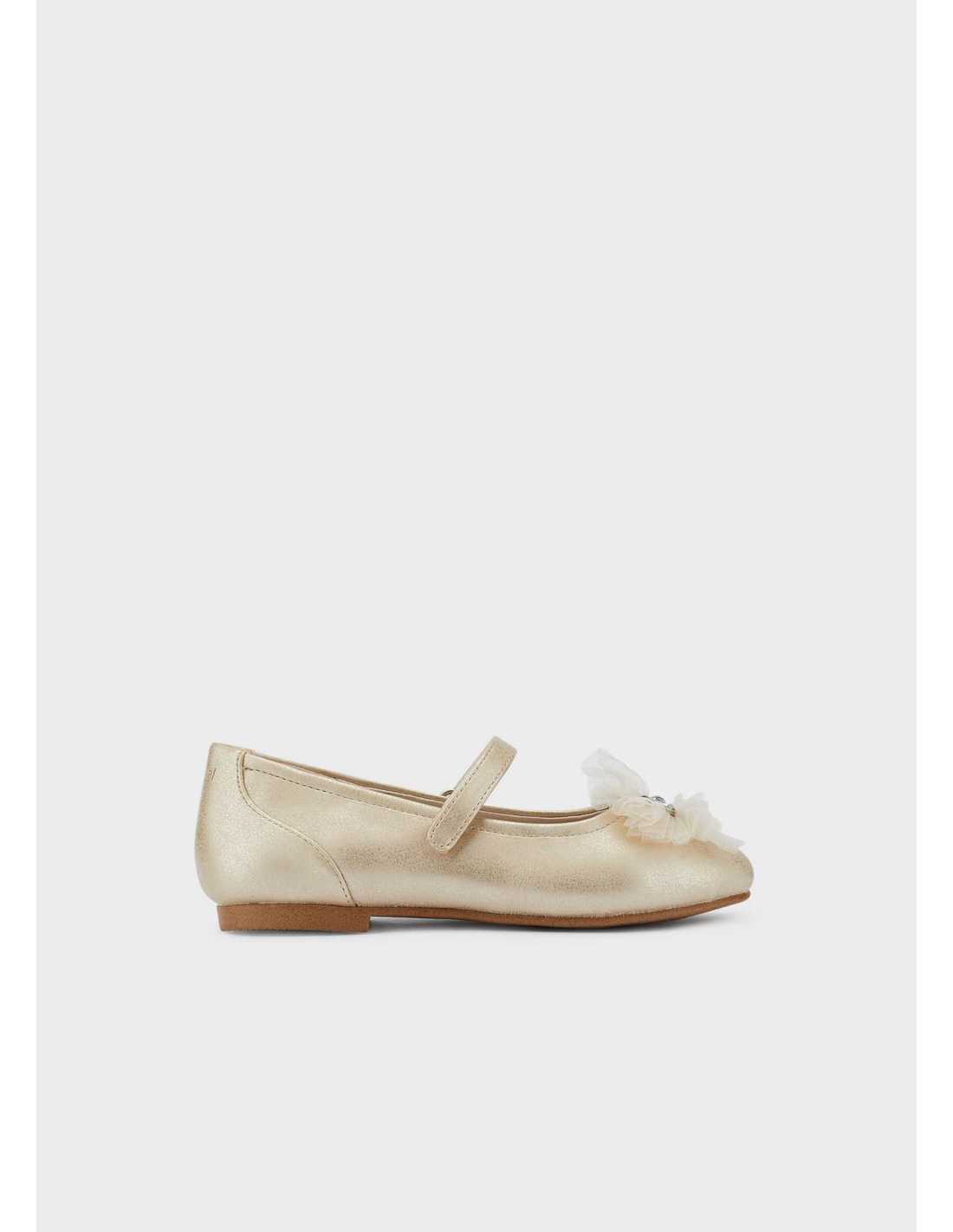 Bailarinas para niña de estilo femenino y elegante. Con este zapato completarás sus estilismosmás especiales. Forro interior y plantilla de piel. Todos nuestros zapatos se realizan con pieles libres de cromo. Suela de goma antideslizante y flexible. Cierre con velcro ajustable que garantiza una perfecta sujeción del pie. Este modelo también está disponible en las tallas 26 a 30