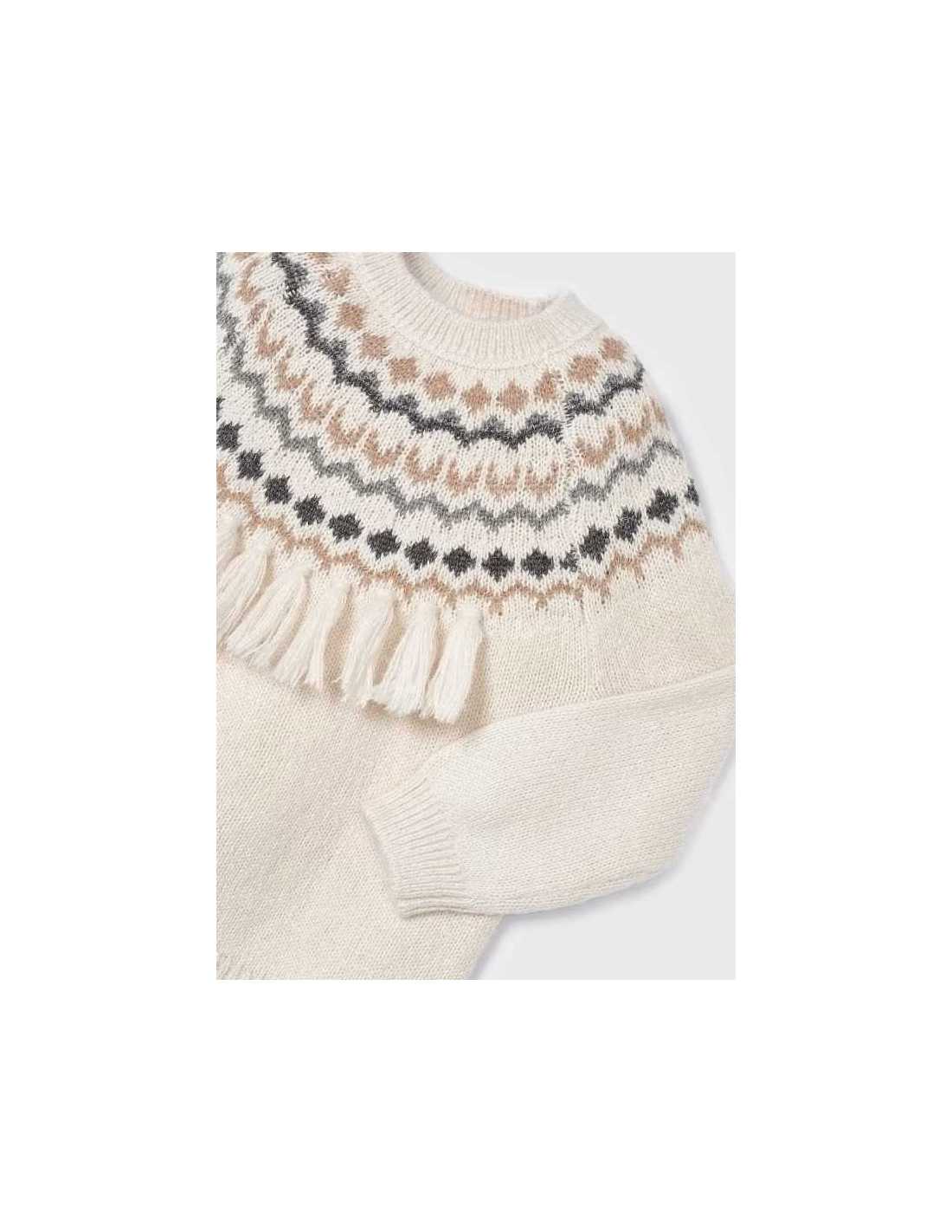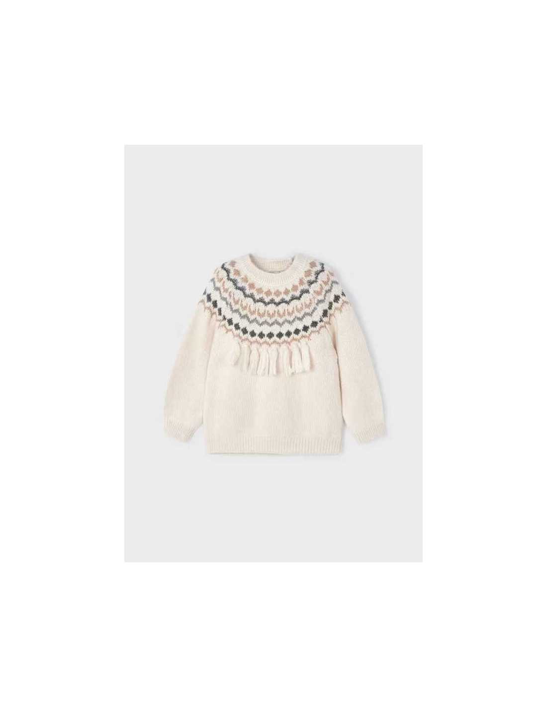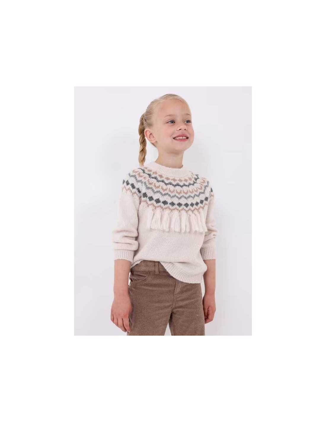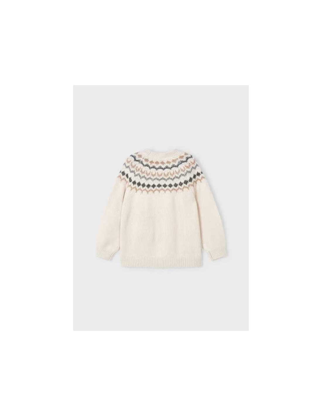 Jersey de manga larga para niña. Tejido de punto con lana. Dibujo tejido con técnica intarsia.