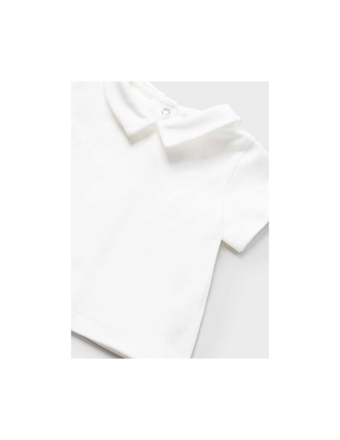 Camiseta de manga corta para recién nacido. Cierre con botones en la espalda para facilitar la puesta de la prenda. Diseño liso.