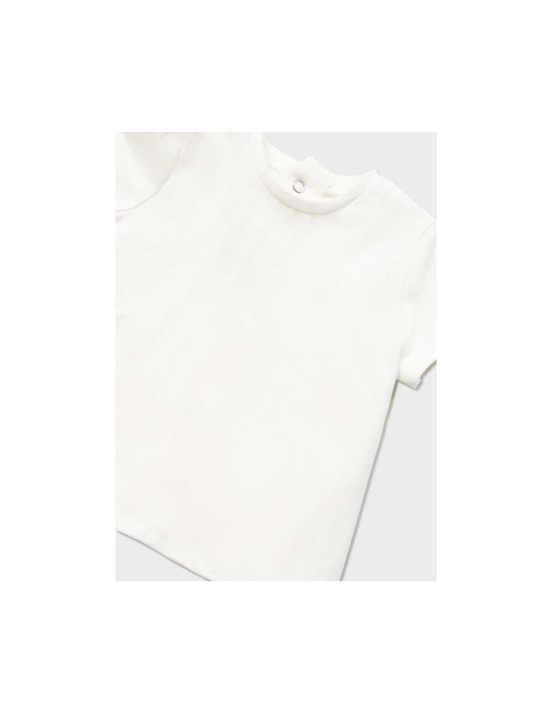 Camiseta de manga corta para recién nacido. Cierre con botones a presión en la parte posterior para facilitar la puesta de la prenda.