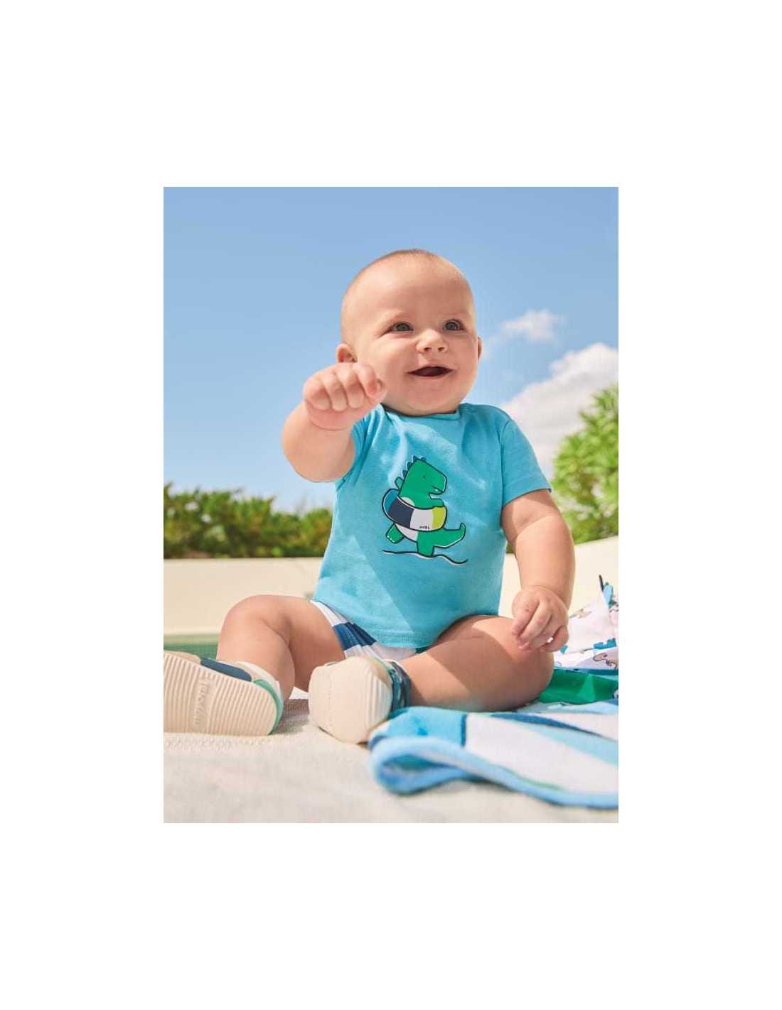 Refrescante conjunto de baño para recién nacido de dos piezas combinadas, perfecto para disfrutar con estilo de los días de playa en verano.