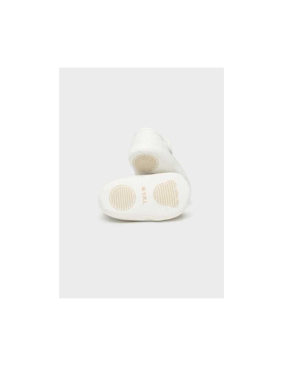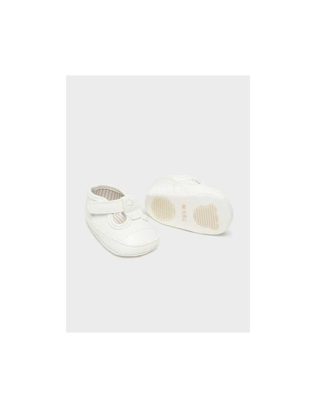 Zapatos de tipo pepito con los que podrás vestir los pies de tu bebé en todo tipo de ocasiones. Forro interior y plantilla de algodón transpirable. Suela ligera y antideslizante. Cierre con velcro ajustable que garantiza una perfecta sujeción del pie. Este artículo se presenta en una caja de la línea Newborn ideal para regalar en ocasiones especiales.