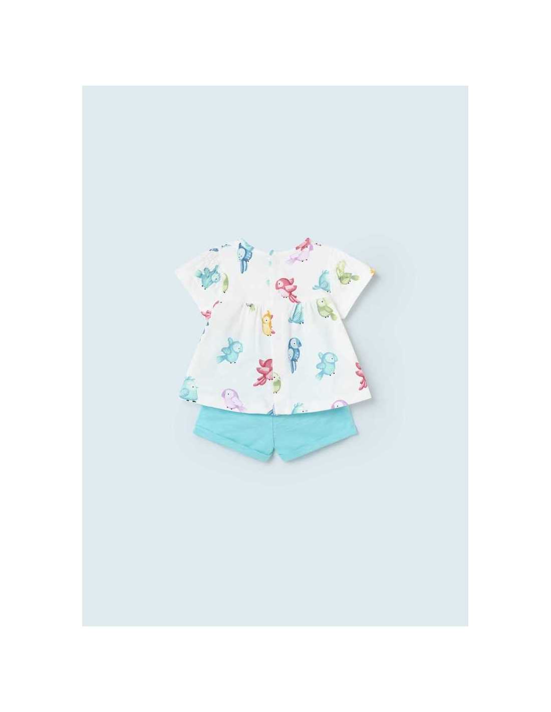 Prenda ECOFRIENDS, contiene algodón sostenible. Set de cuatro piezas para recién nacido formado por dos conjuntos de camiseta de manga corta y short combinables.
