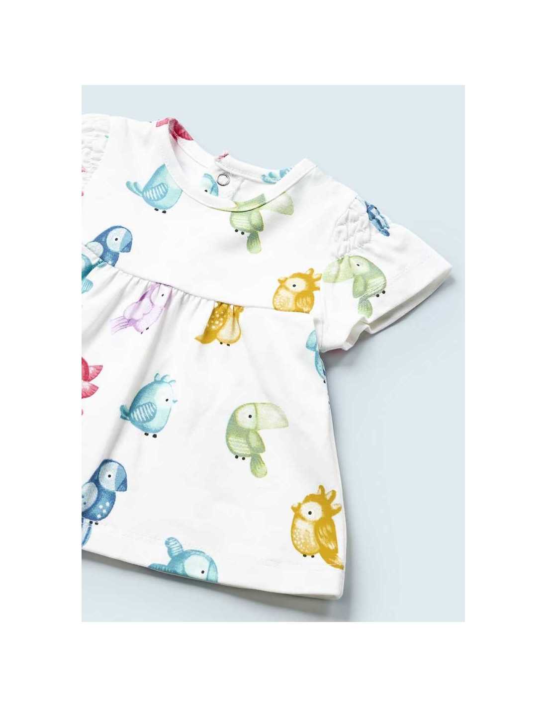 Camiseta de manga corta para recién nacido. Cierre con botones a presión en la parte posterior para facilitar la puesta de la prenda.