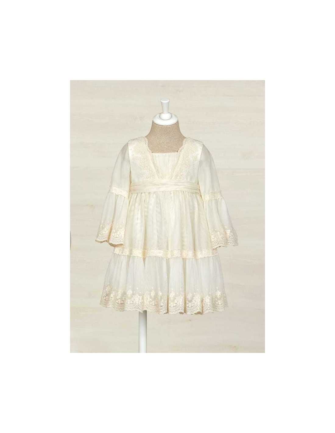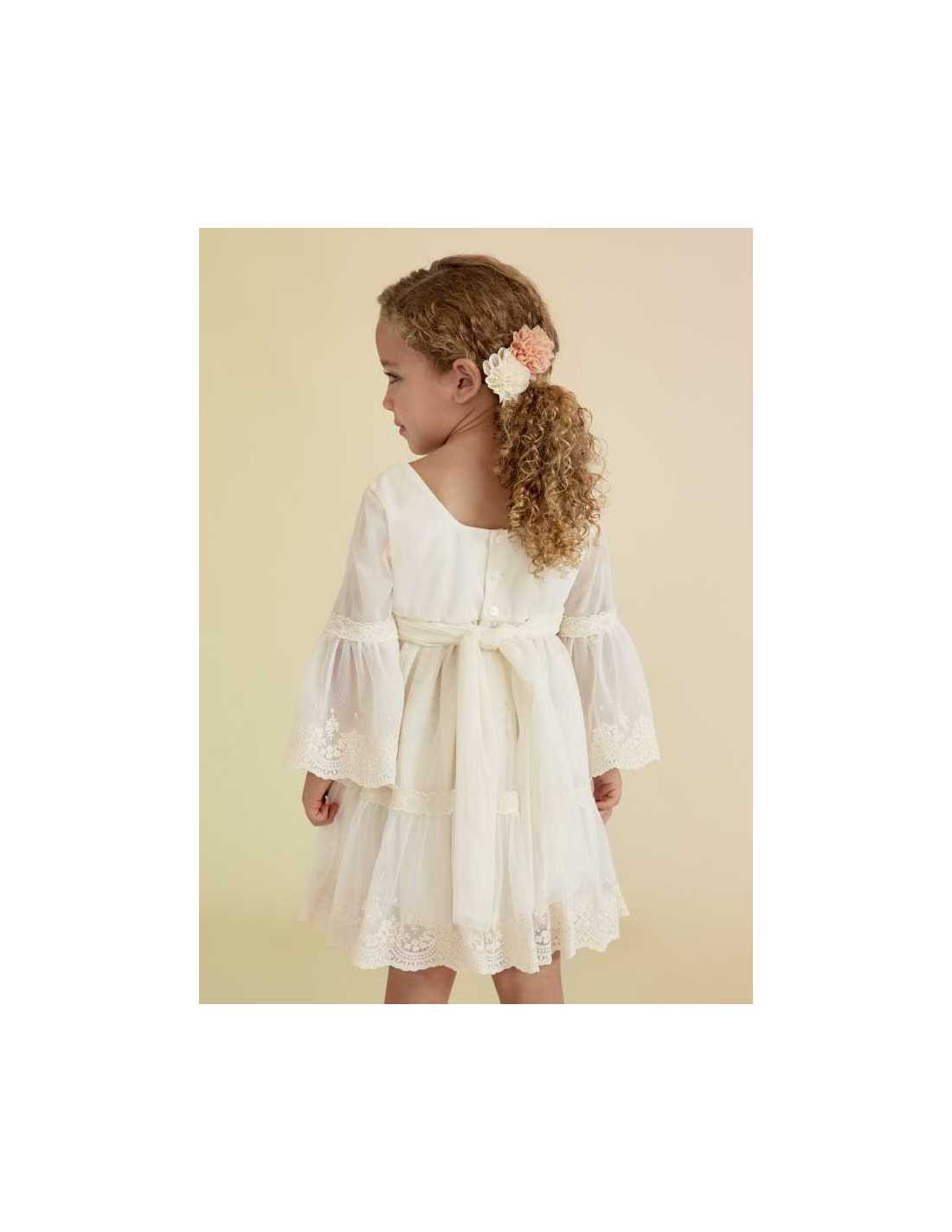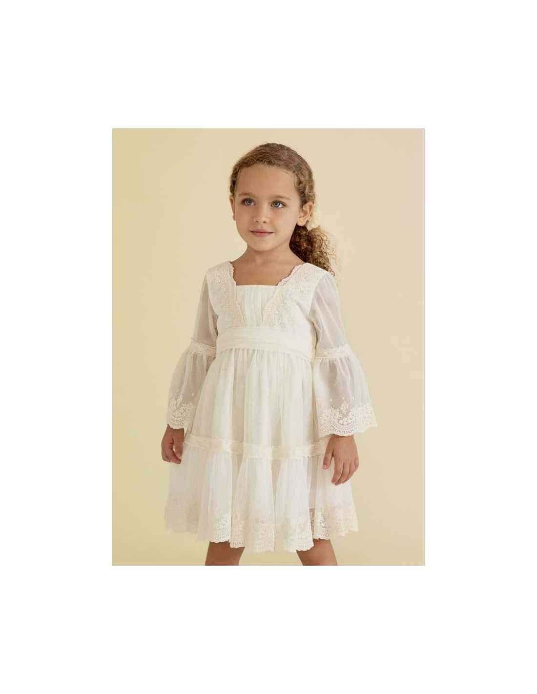 Vestido de tul bordado con puntillas para niña.