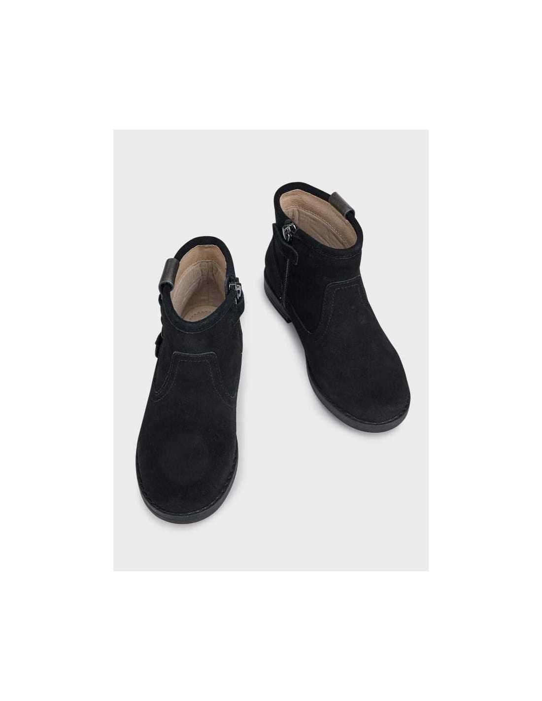 Zapato ECOFRIENDS, fabricado con piel curtida de manera sostenible. Botas de caña media para niña, muy prácticas para proteger sus pies en los momentos de frío. Material exterior de piel. Plantilla de piel. Todos nuestros zapatos se realizan con pieles libres de cromo. Suela ligera y antideslizante. Cierre con cremallera lateral para una puesta rápida y sencilla.
